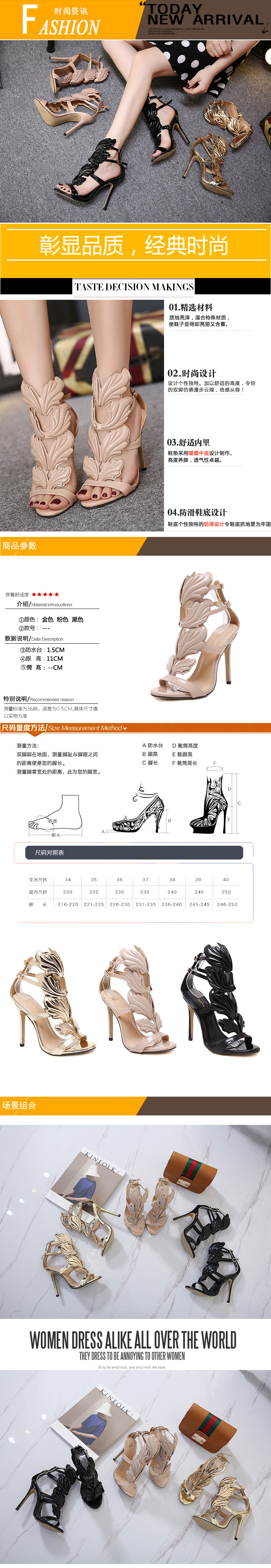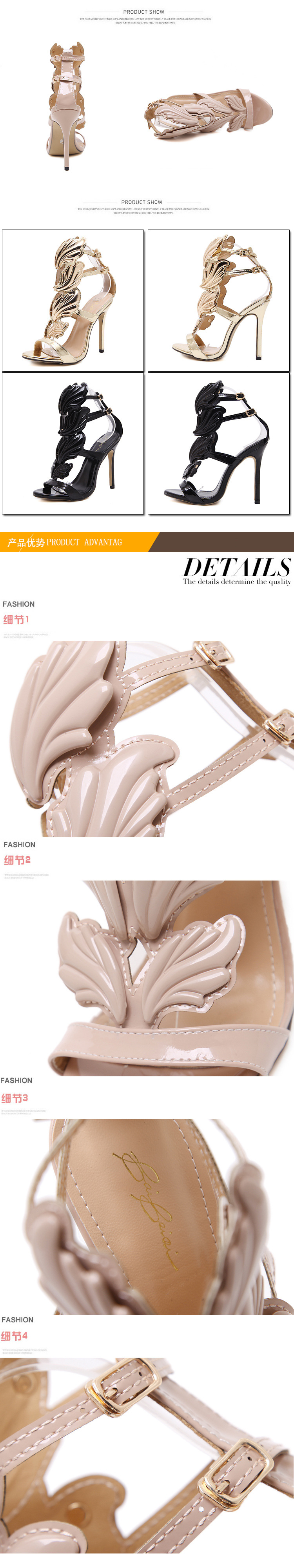 2025 여름 새로운 유럽과 미국 스타 럭셔리 금속 날개 스틸레토 여성 신발 하이힐 샌들 대외 무역 42스토어 가기