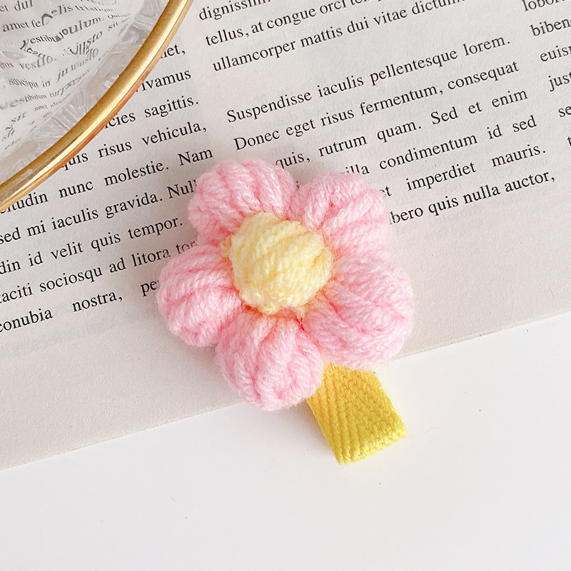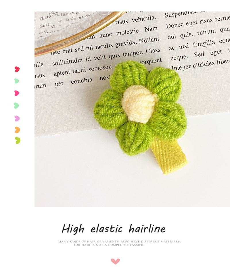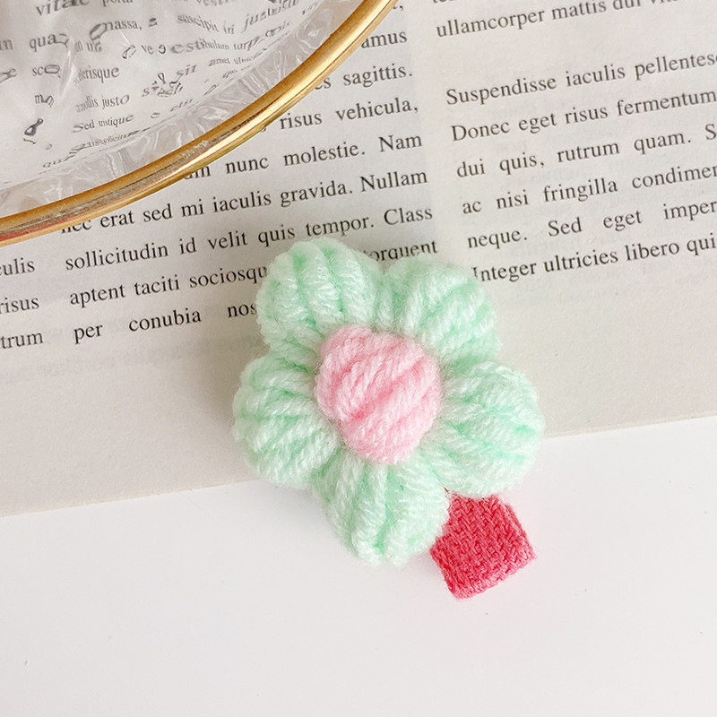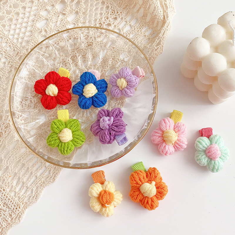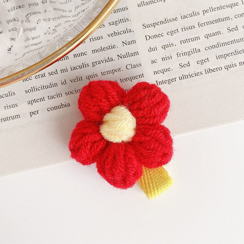 달콤한 꽃 머리핀, 수제 모직 헤어핀, 앞머리핀, 귀여운 소녀스러운 하트 머리핀, 한국 헤어 액세서리