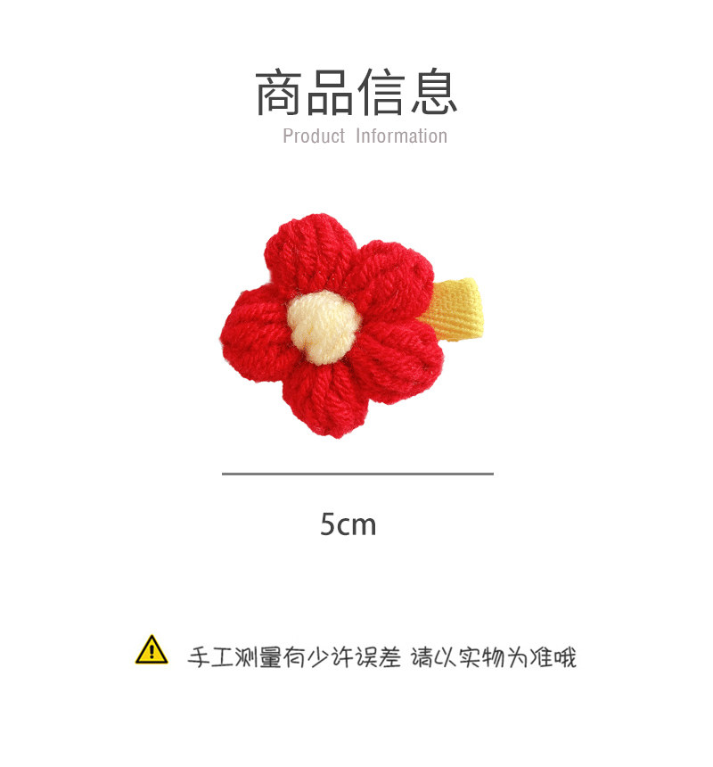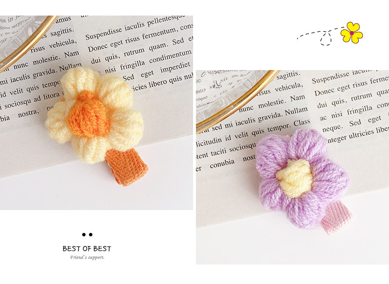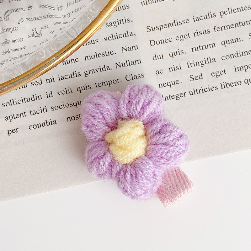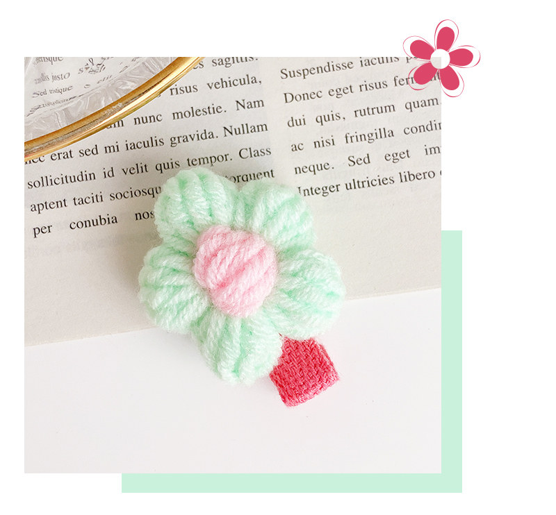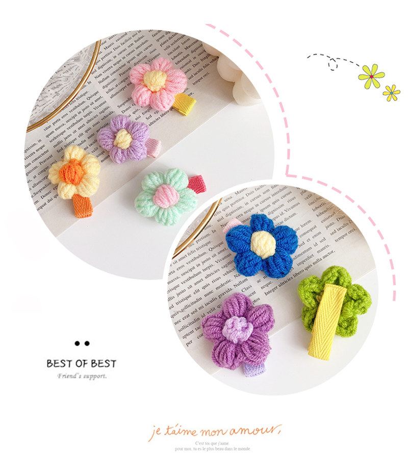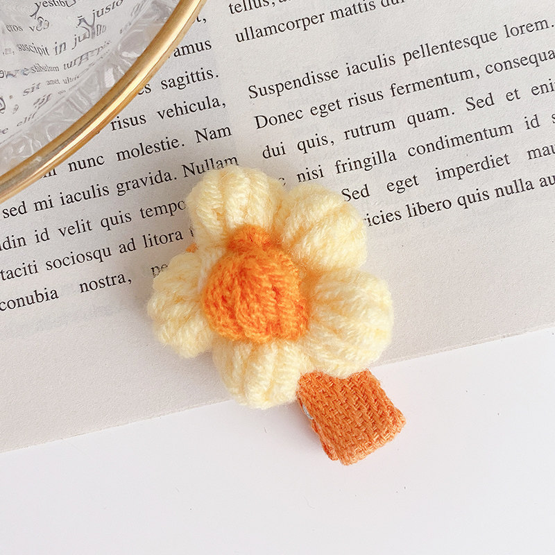 달콤한 꽃 머리핀, 수제 모직 헤어핀, 앞머리핀, 귀여운 소녀스러운 하트 머리핀, 한국 헤어 액세서리