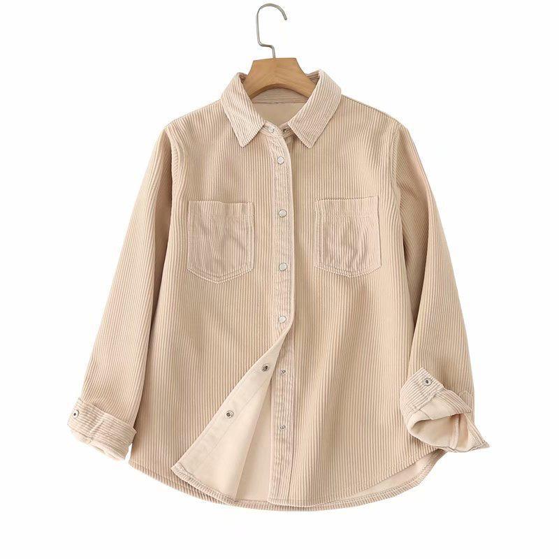16XT-5622 한국 여성 의류 도매 2023 가을 새로운 심플 조커 코듀로이 기모 셔츠