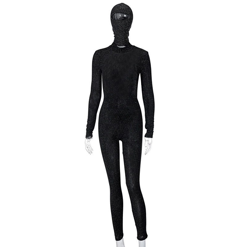 유럽과 미국 가을과 겨울 새로운 여성의 대외 무역 폭발성 긴 소매 하이 칼라 등이없는 원피스 바지 스포츠 점프 슈트 제공 헤드 기어