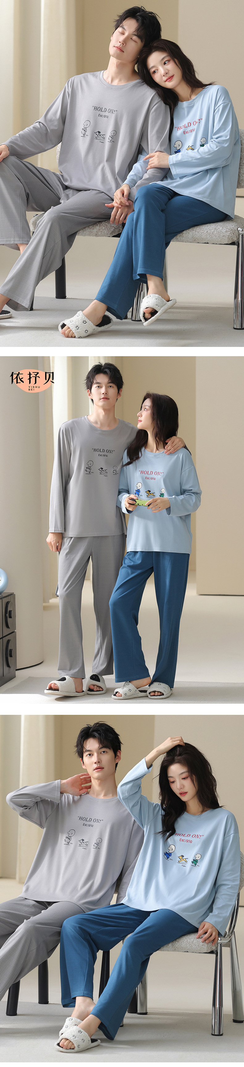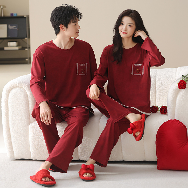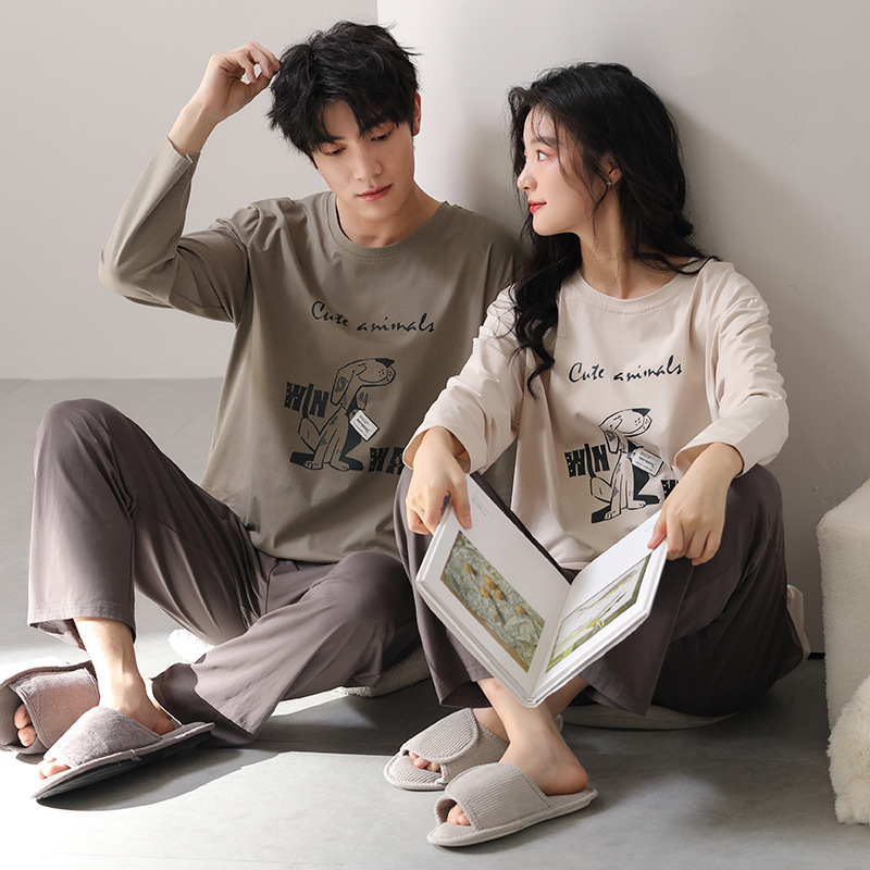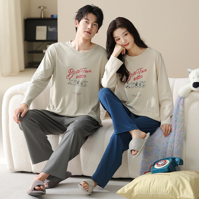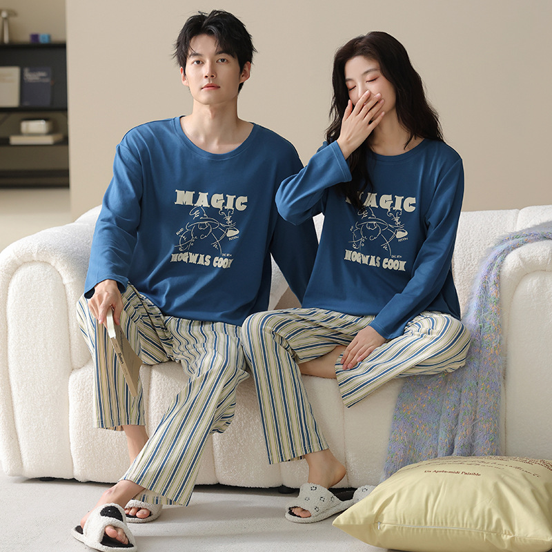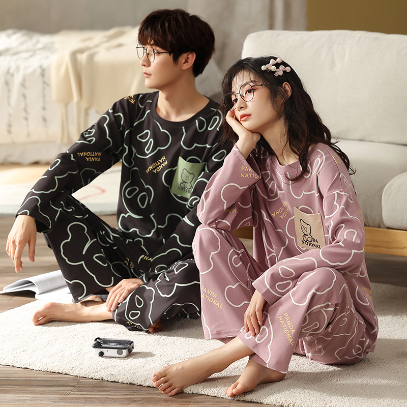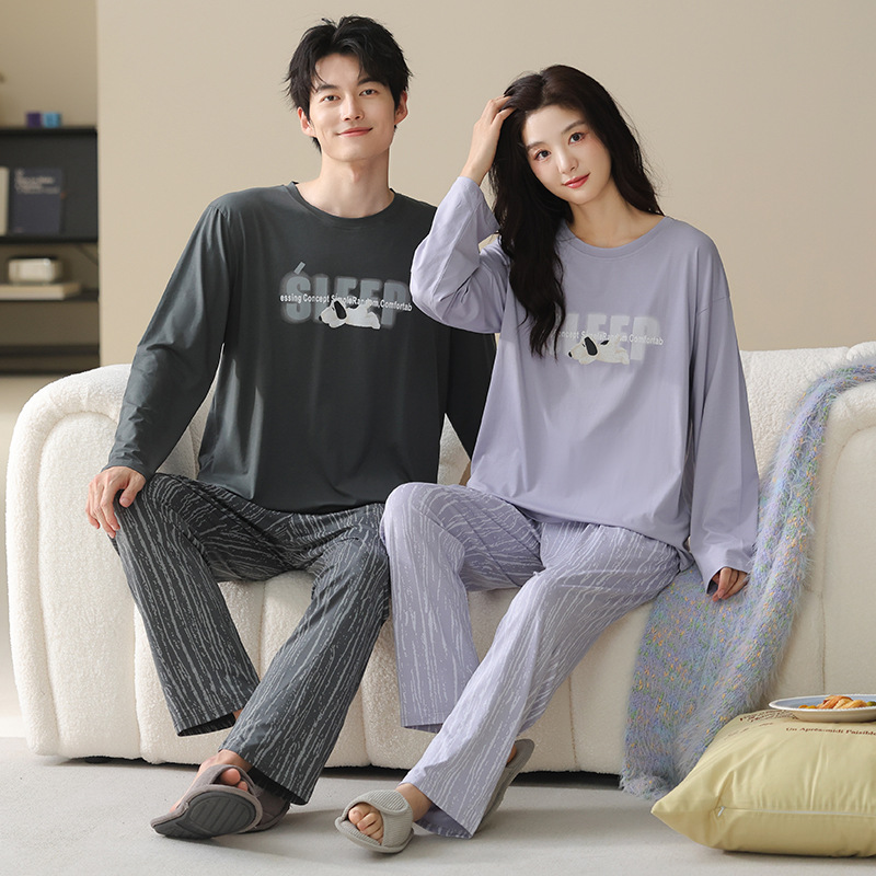 고품질 커플 잠옷 모달 코튼 2025 가을 겨울 신상 한국 스타일 여성 홈웨어 긴팔 남성 대형 사이즈스토어 가기