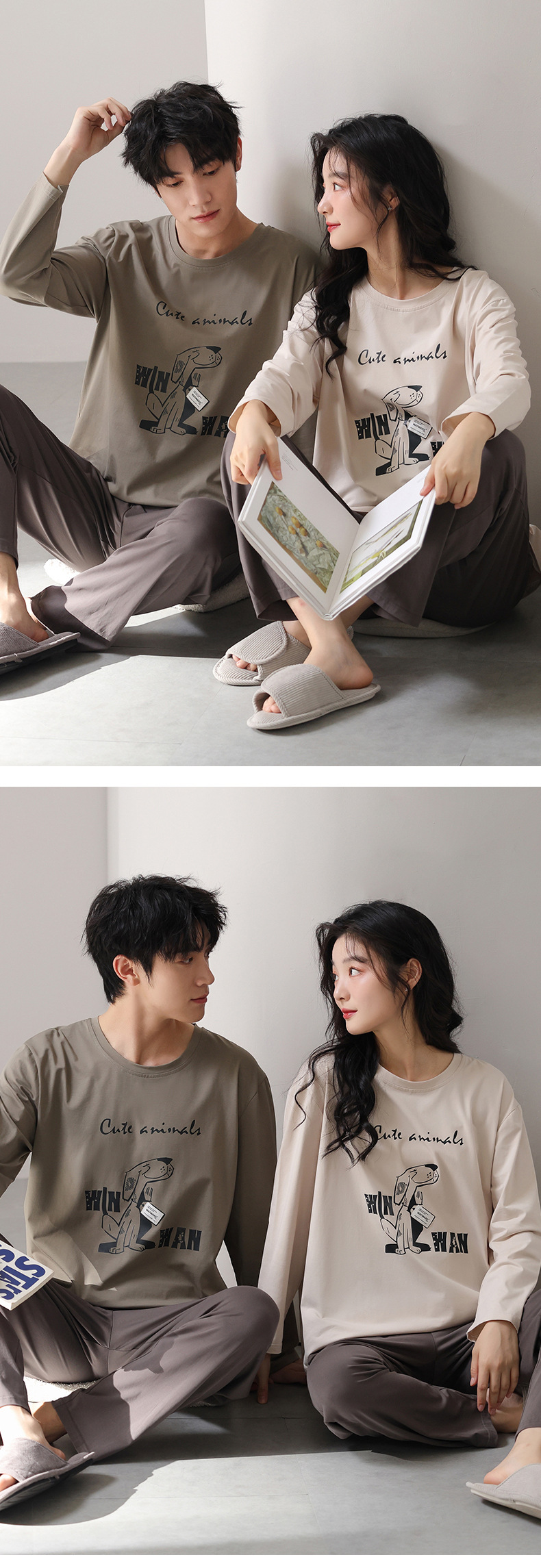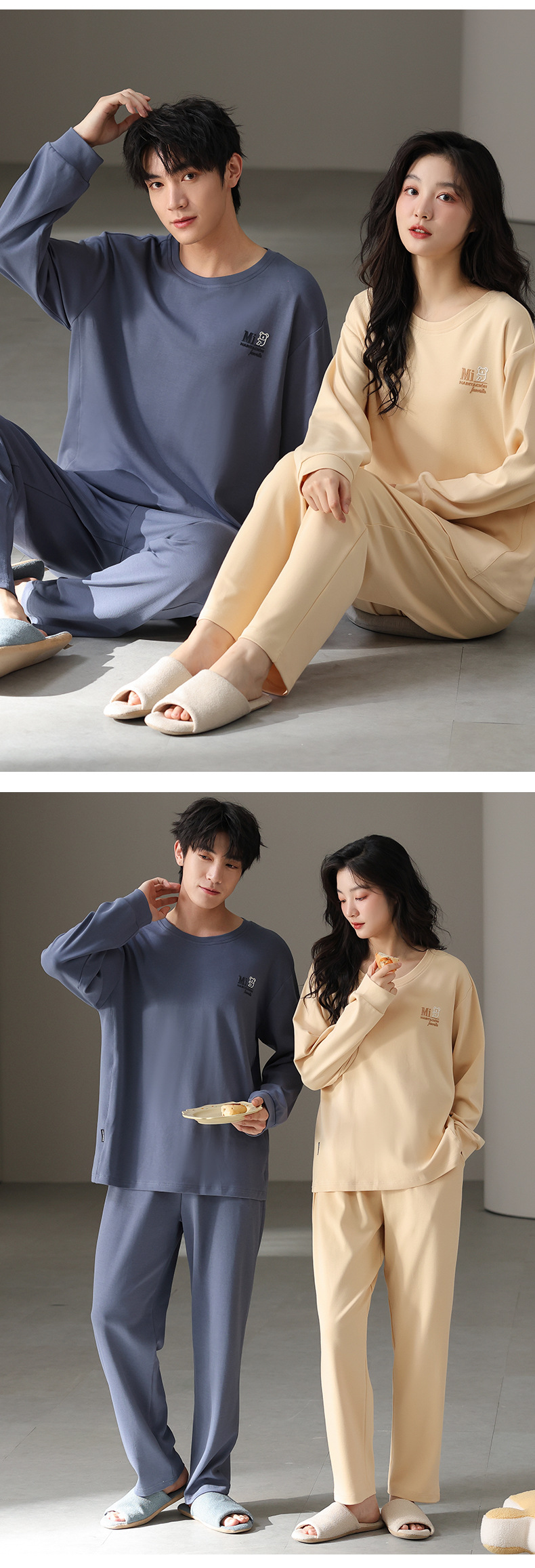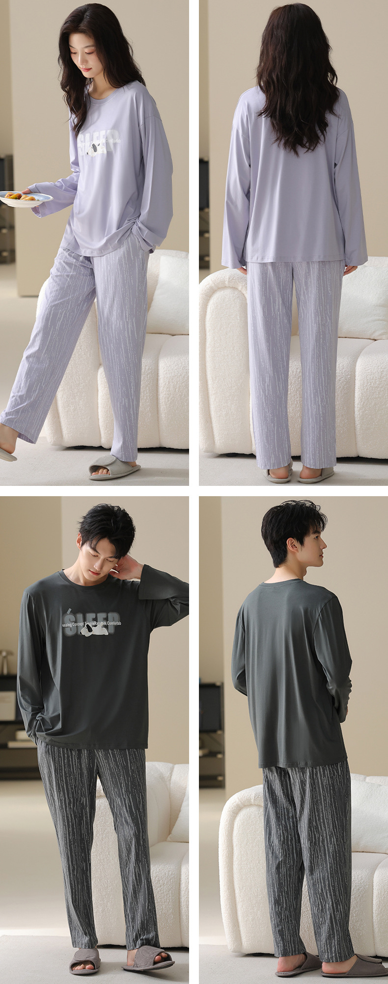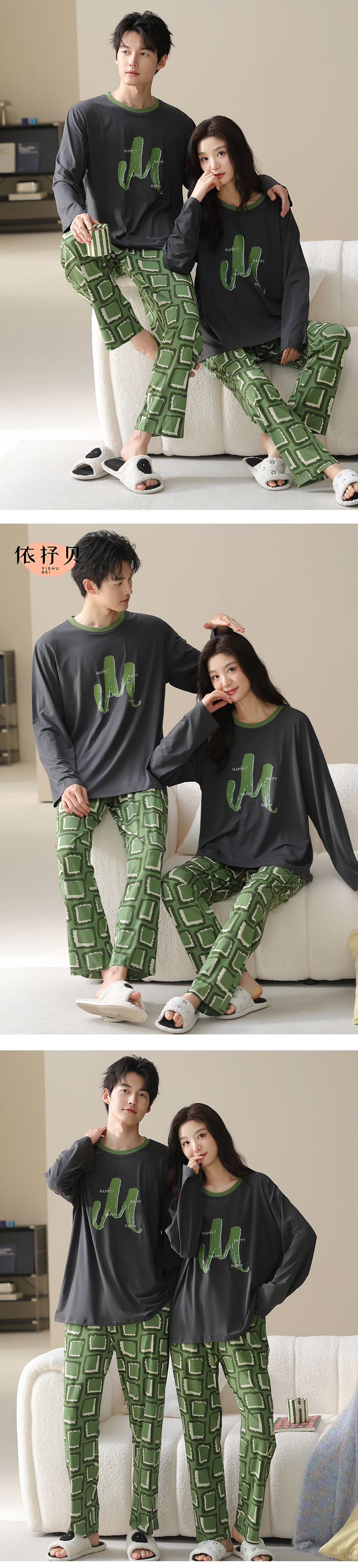 고품질 커플 잠옷 모달 코튼 2025 가을 겨울 신상 한국 스타일 여성 홈웨어 긴팔 남성 대형 사이즈스토어 가기