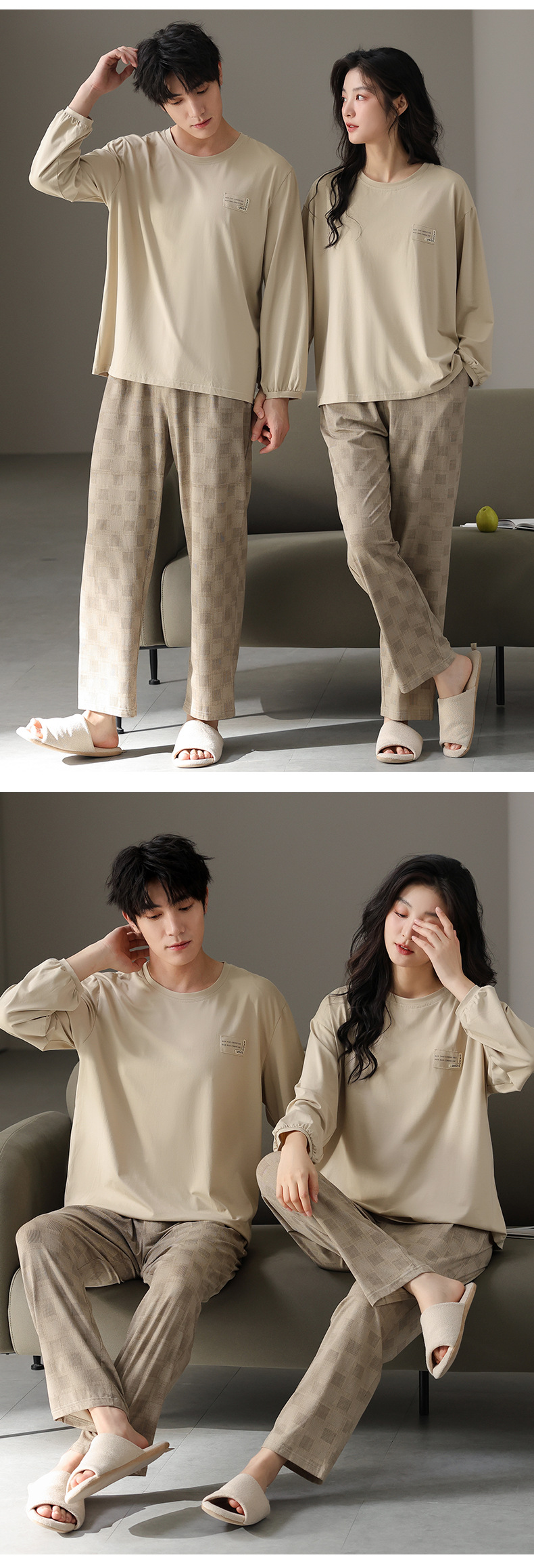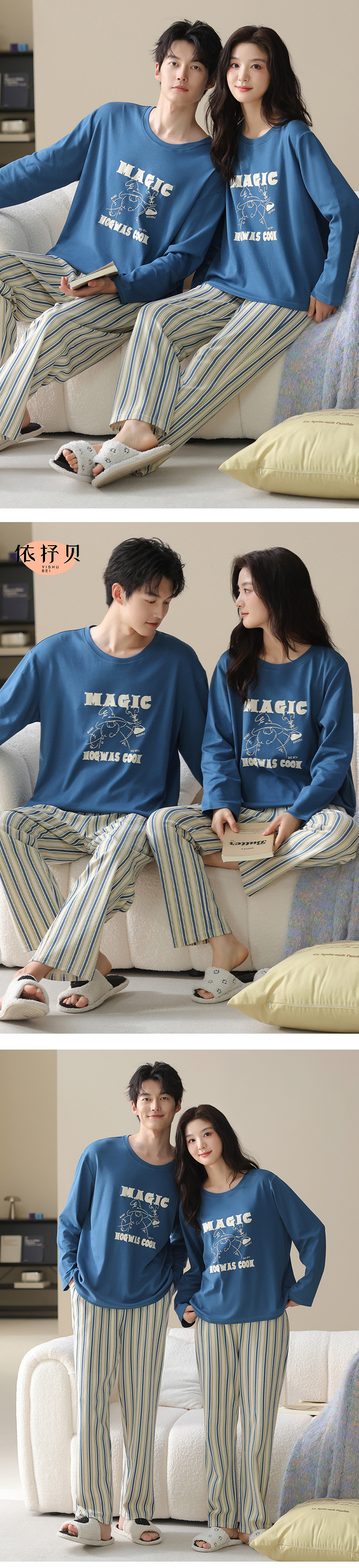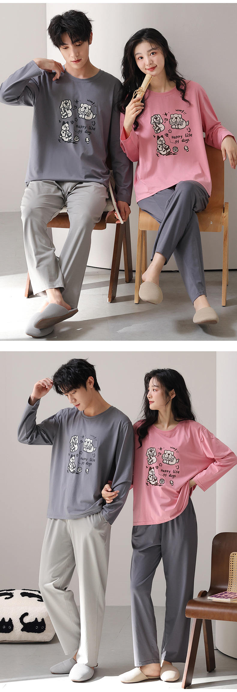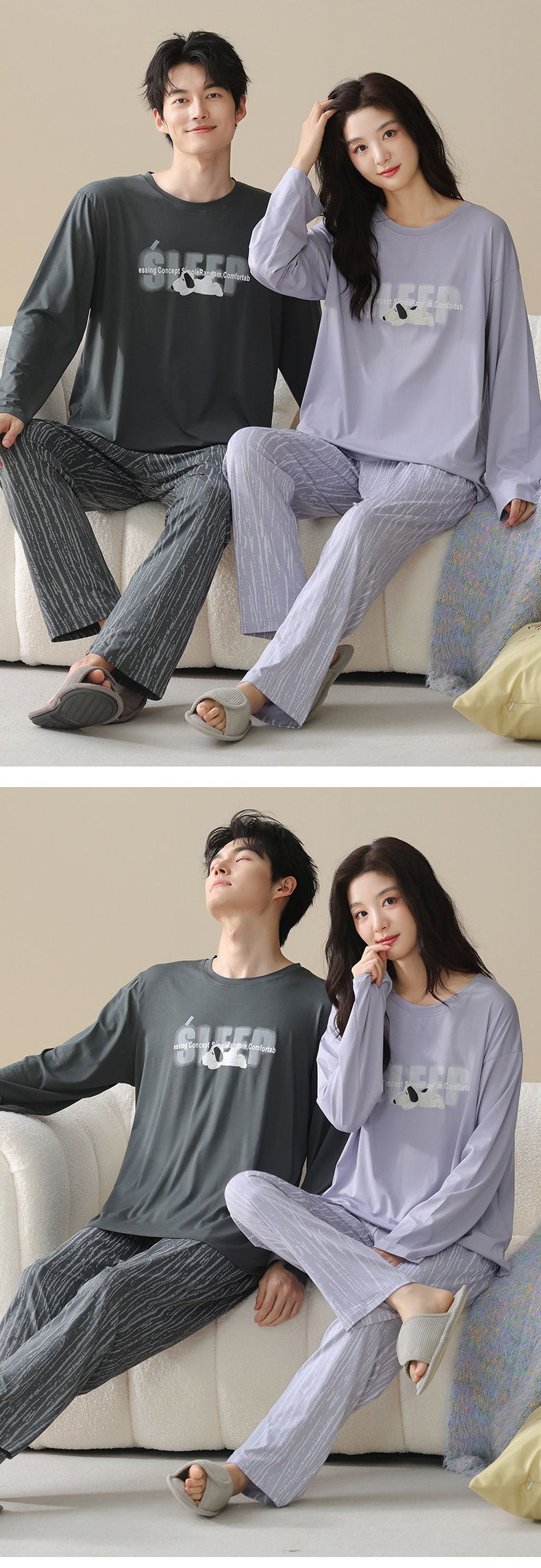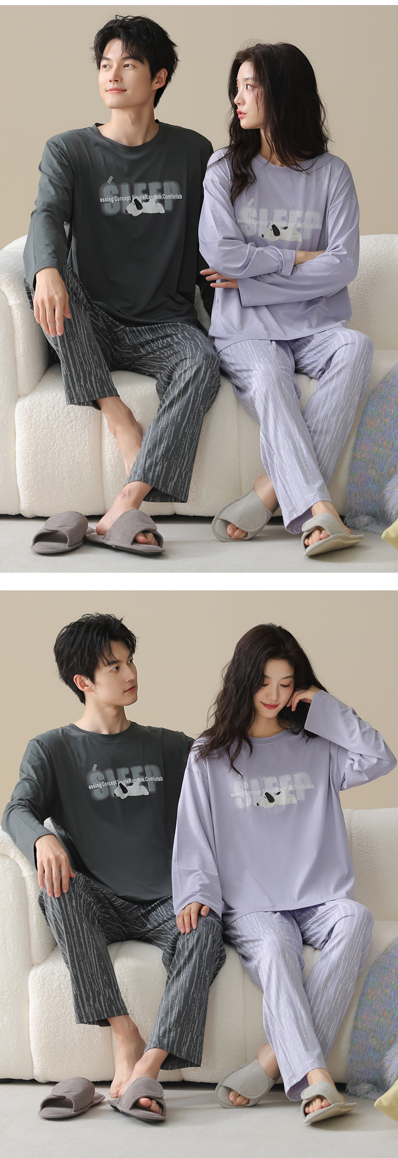 고품질 커플 잠옷 모달 코튼 2025 가을 겨울 신상 한국 스타일 여성 홈웨어 긴팔 남성 대형 사이즈스토어 가기