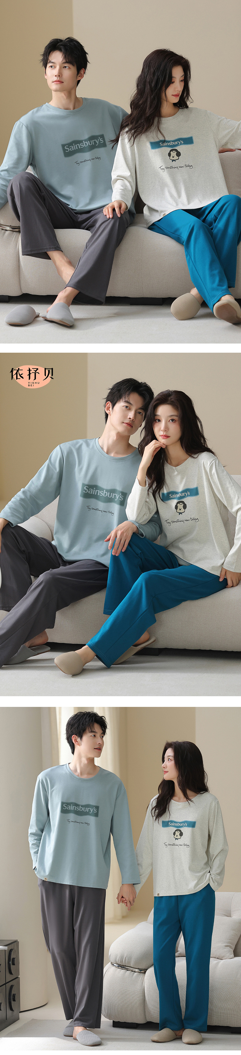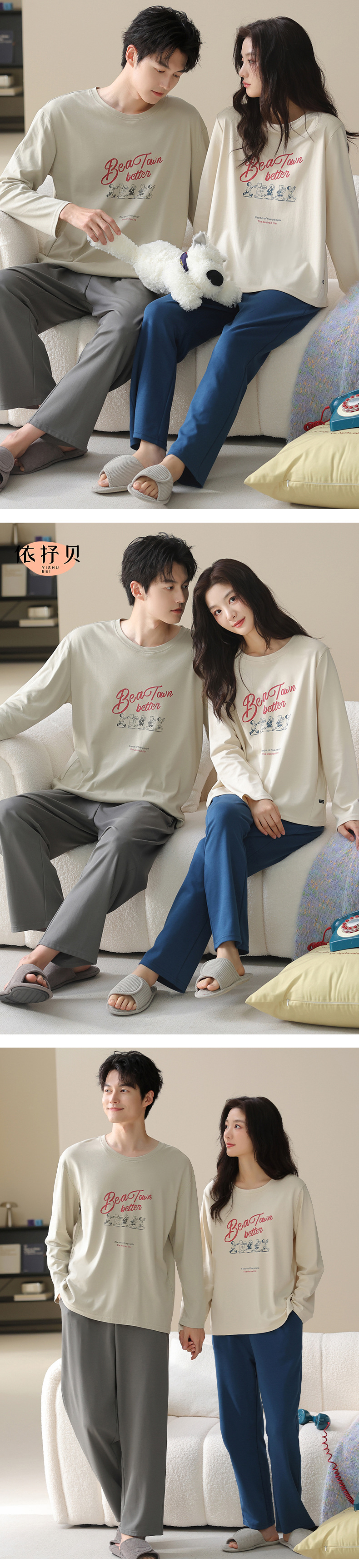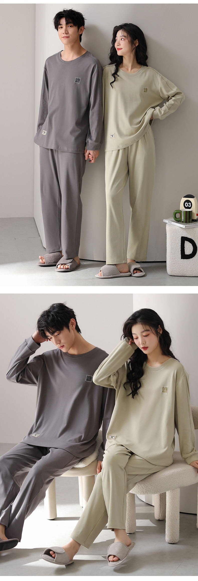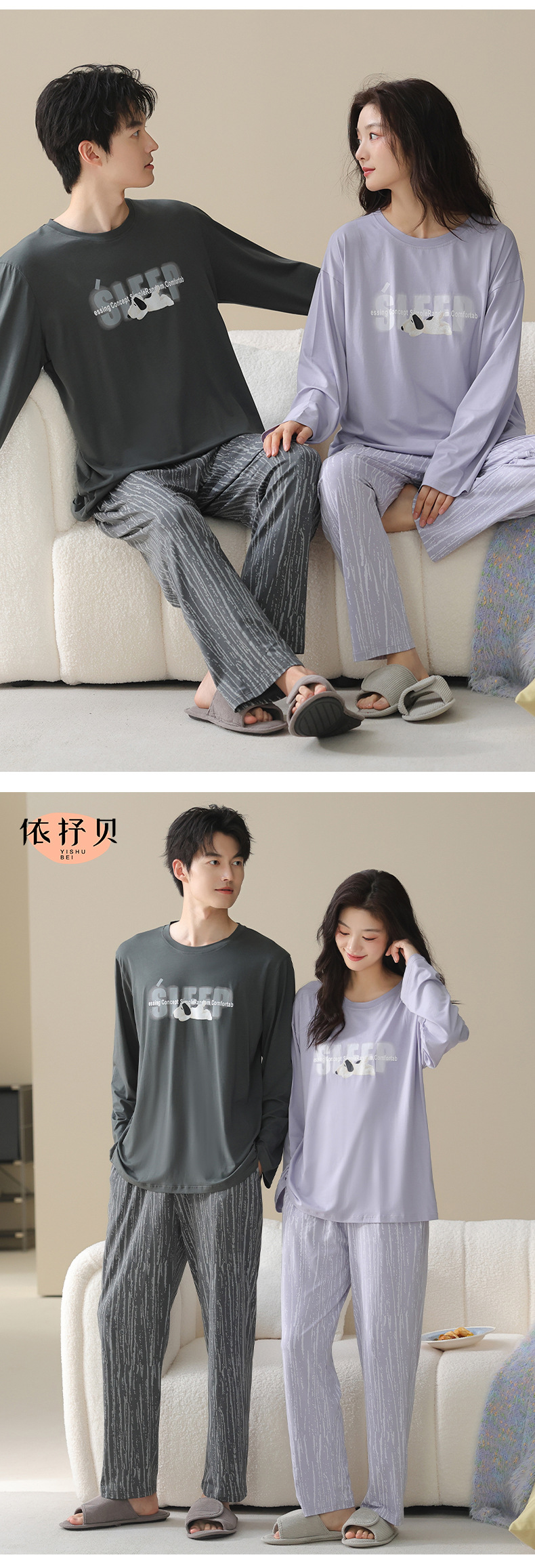 고품질 커플 잠옷 모달 코튼 2025 가을 겨울 신상 한국 스타일 여성 홈웨어 긴팔 남성 대형 사이즈스토어 가기