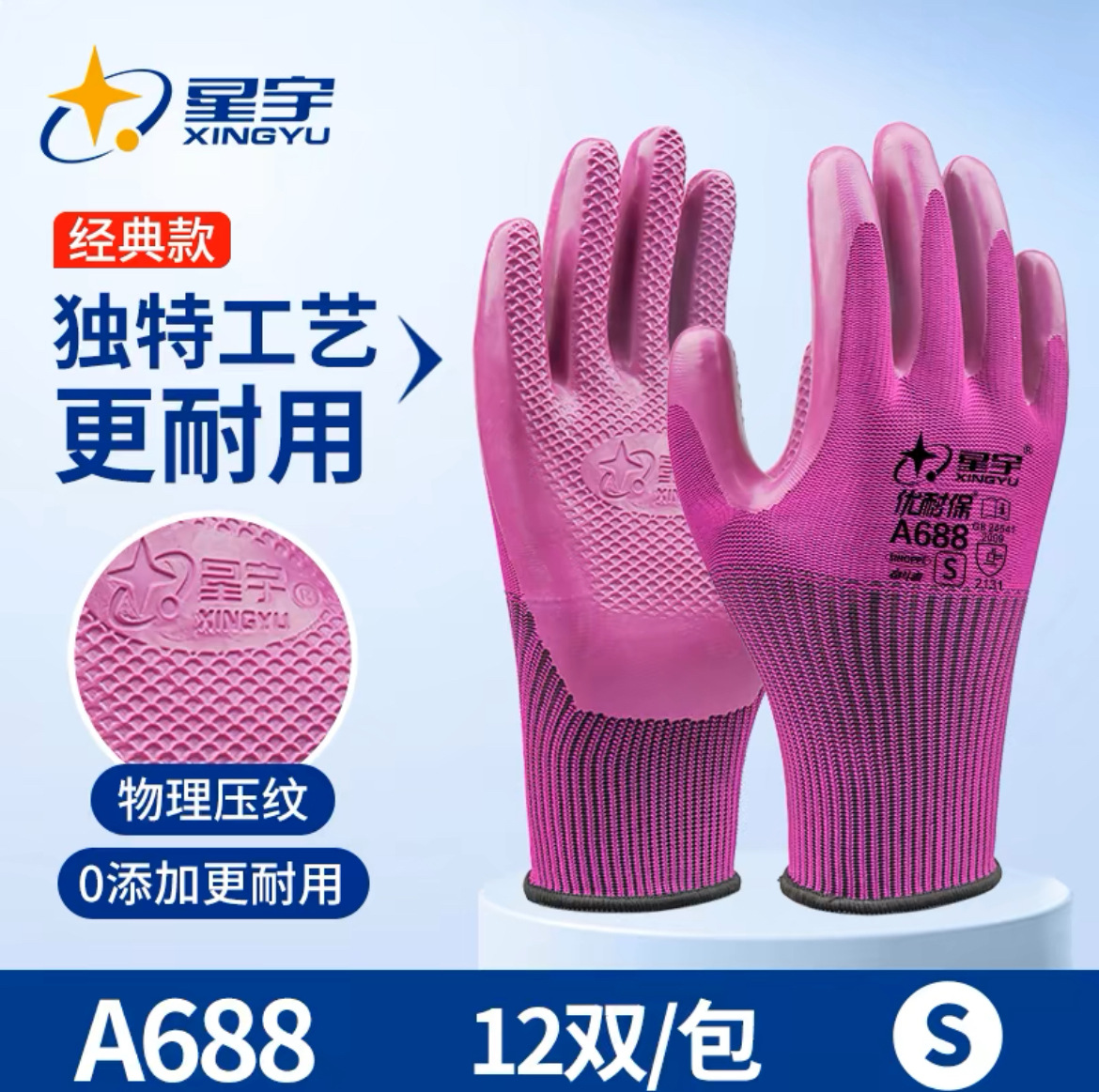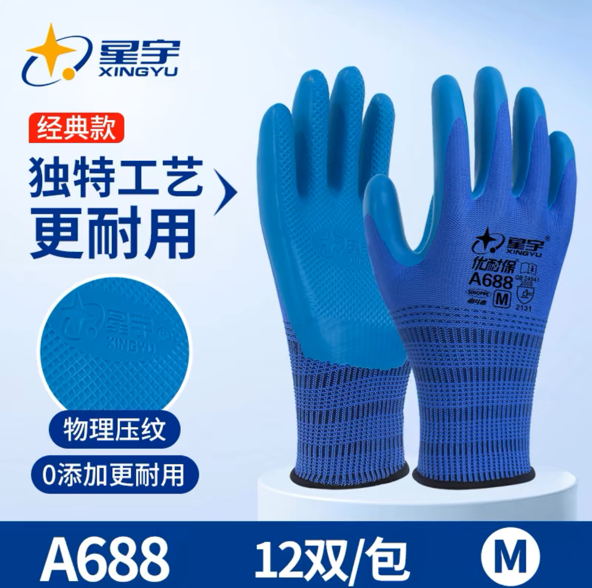 Xingyu Younaibao A688 산업용 작업 장갑 내마모성 미끄럼 방지 고무 코팅 노동 보호 장갑 도매스토어 가기