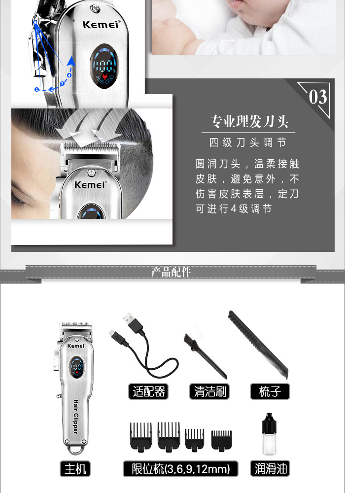 Kemei KM-2002 금속 바디 탄소 스틸 커터 헤드 조정 가능한 커터 헤드 충전식 전기 클리퍼스토어 가기