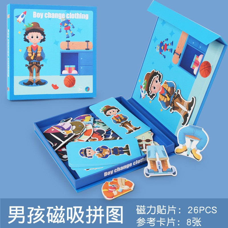자기 나무 교육 조기 교육 장난감 지적 개발 어린이 퍼즐 캐릭터 얼굴 변경 놀이 집 드레스 업 자석스토어 가기