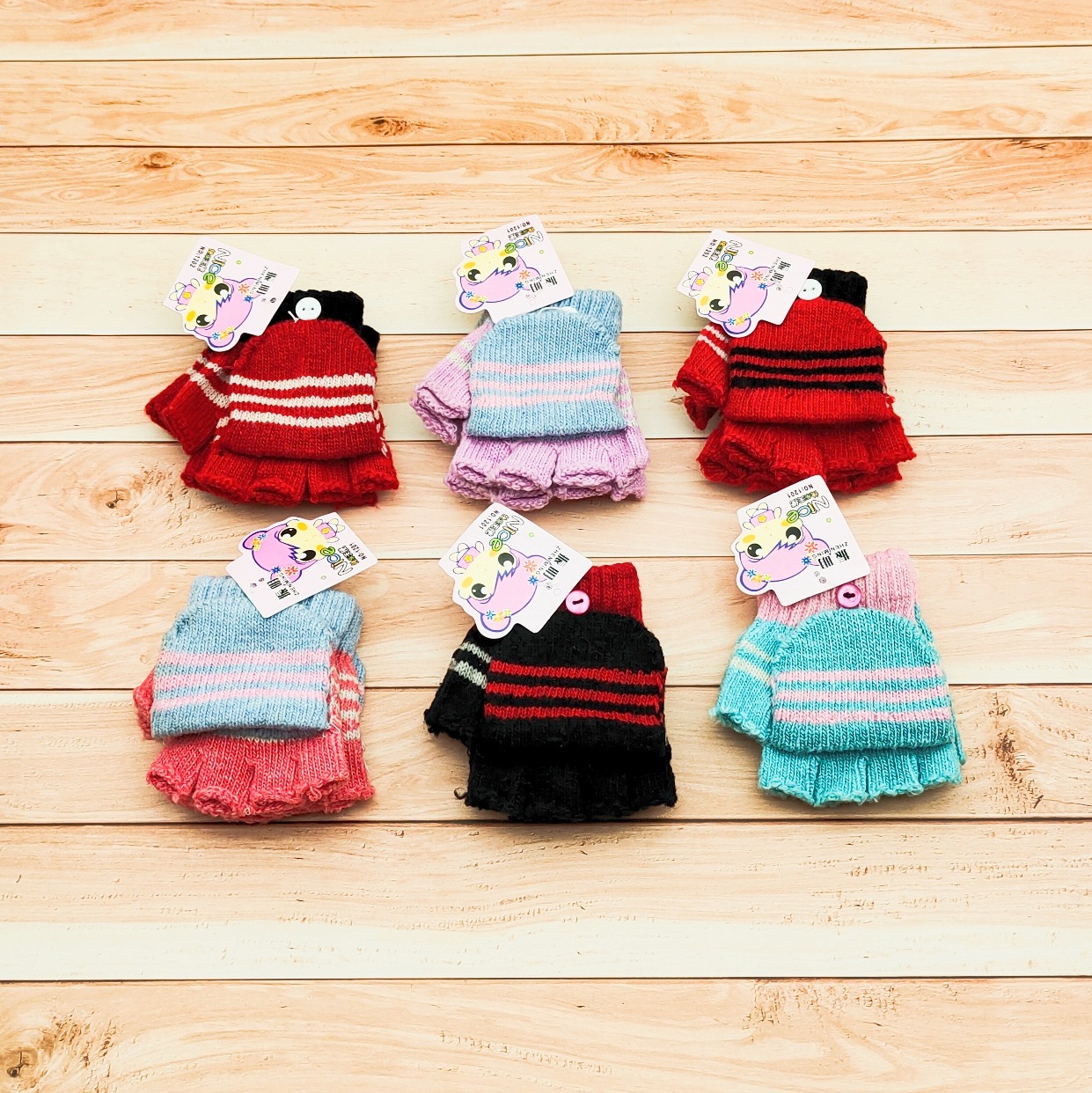 어린이 안티 커버 스트라이프 장갑 니트 따뜻한 손가락 노출 숙제 어린이 장갑스토어 가기