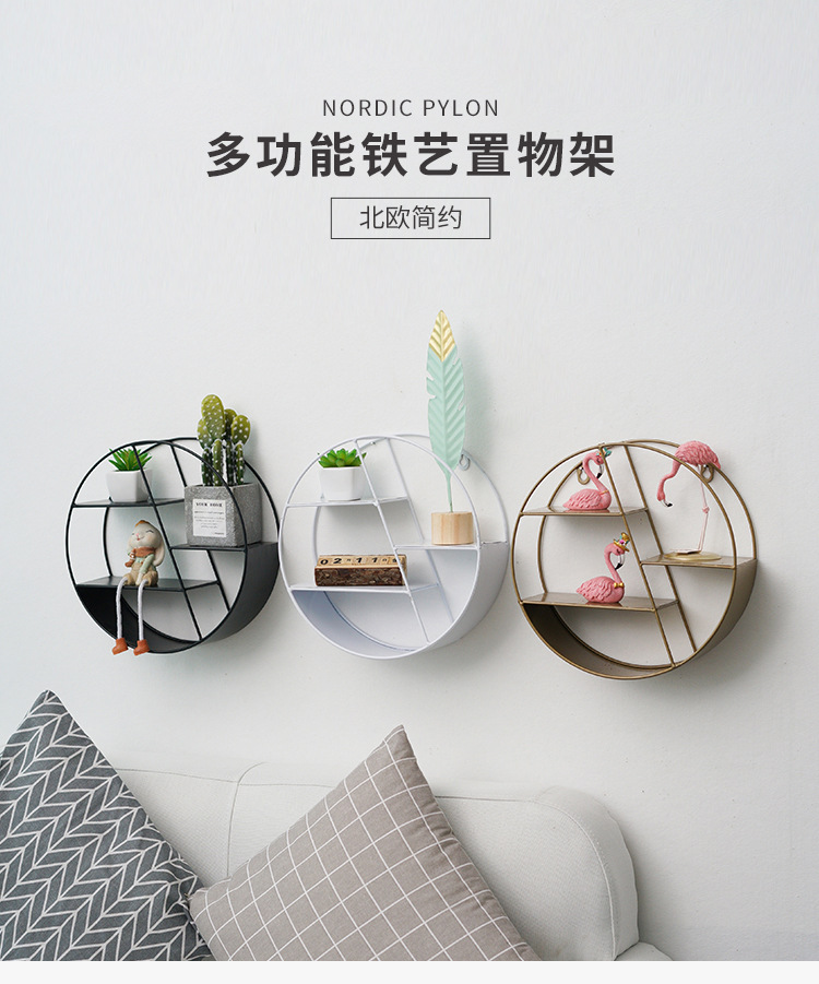 북유럽 간단한 단철 라운드 벽 수납 장식 벽걸이 크리 에이 티브 홈 거실 벽 수납 랙