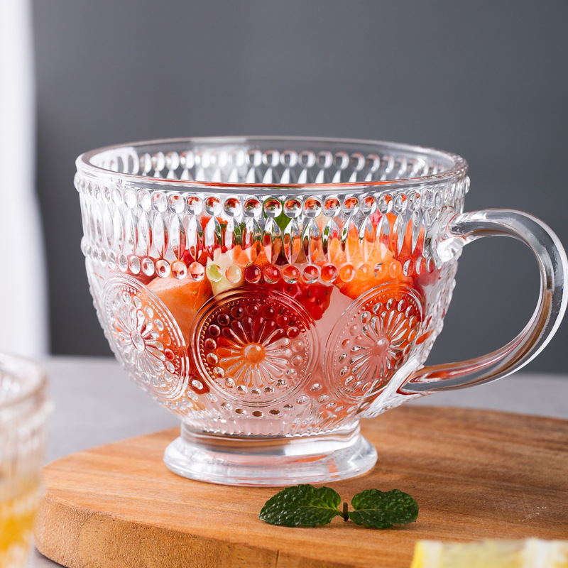 빈티지 양각 프놈펜 유리 컵 스타일 가정용 투명 해바라기 물 컵 찻잔 주스 컵 선물