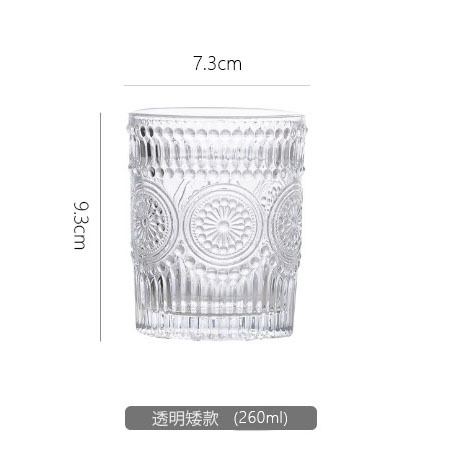 빈티지 양각 프놈펜 유리 컵 스타일 가정용 투명 해바라기 물 컵 찻잔 주스 컵 선물스토어 가기