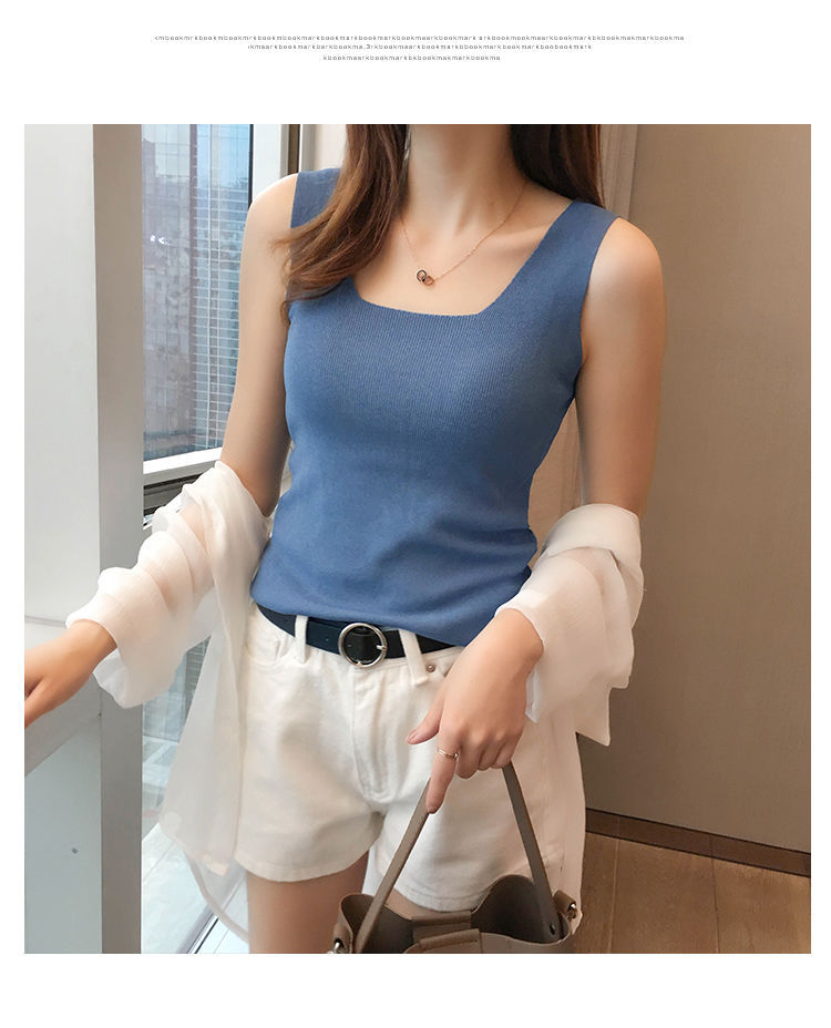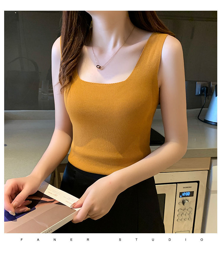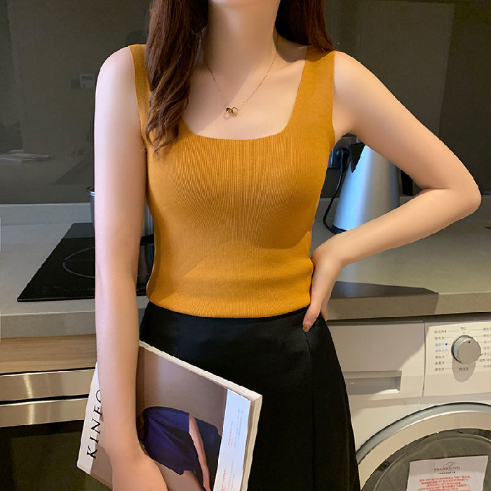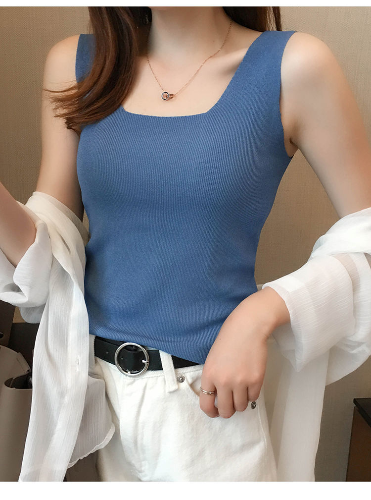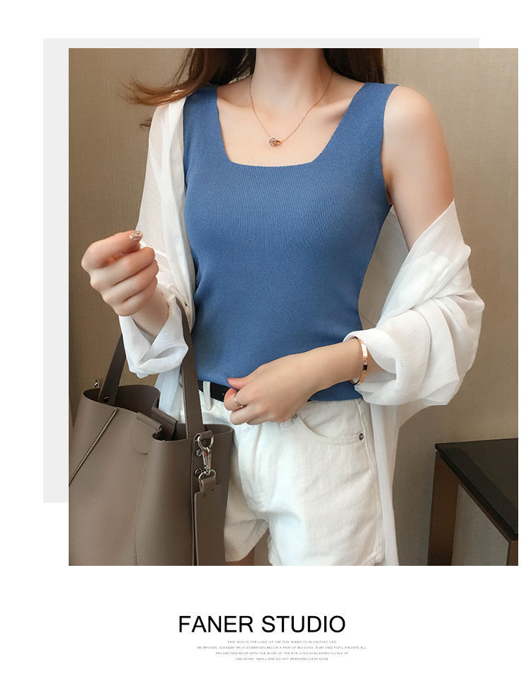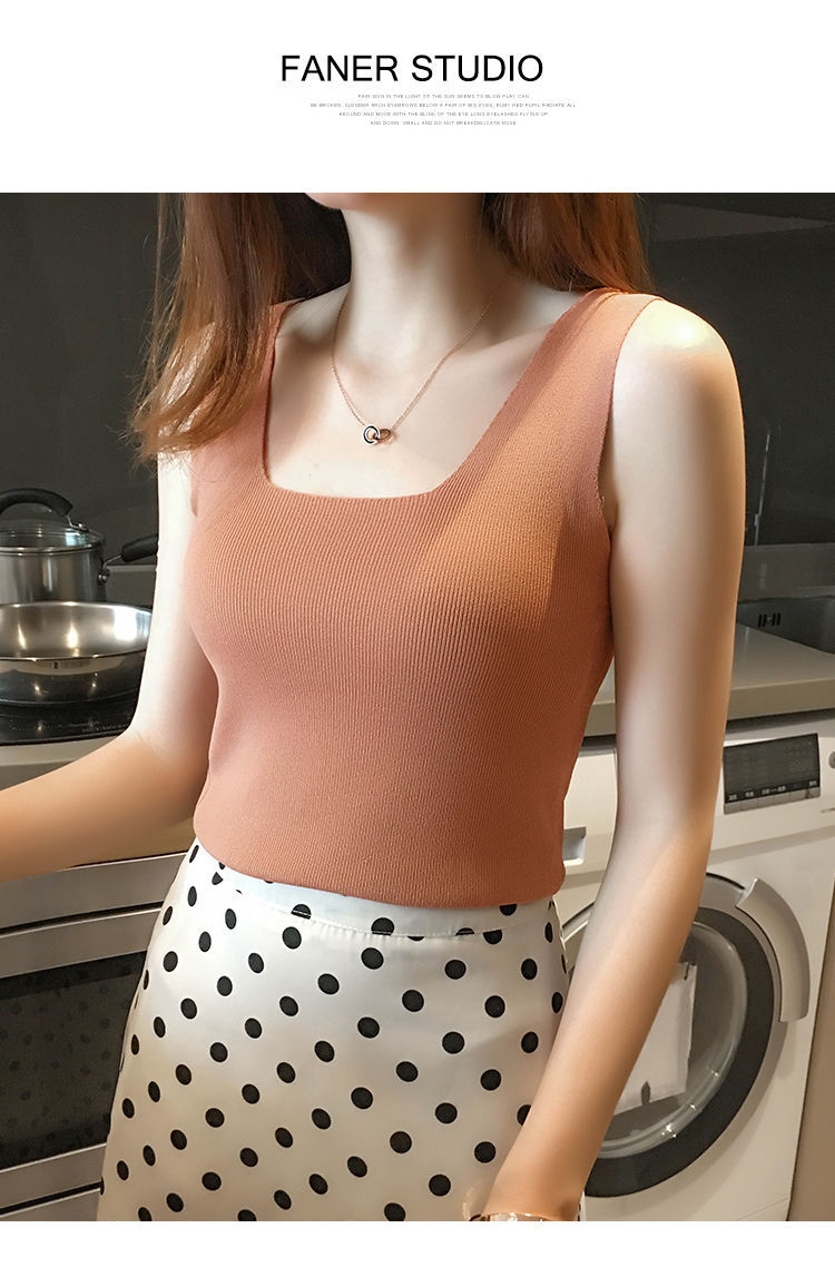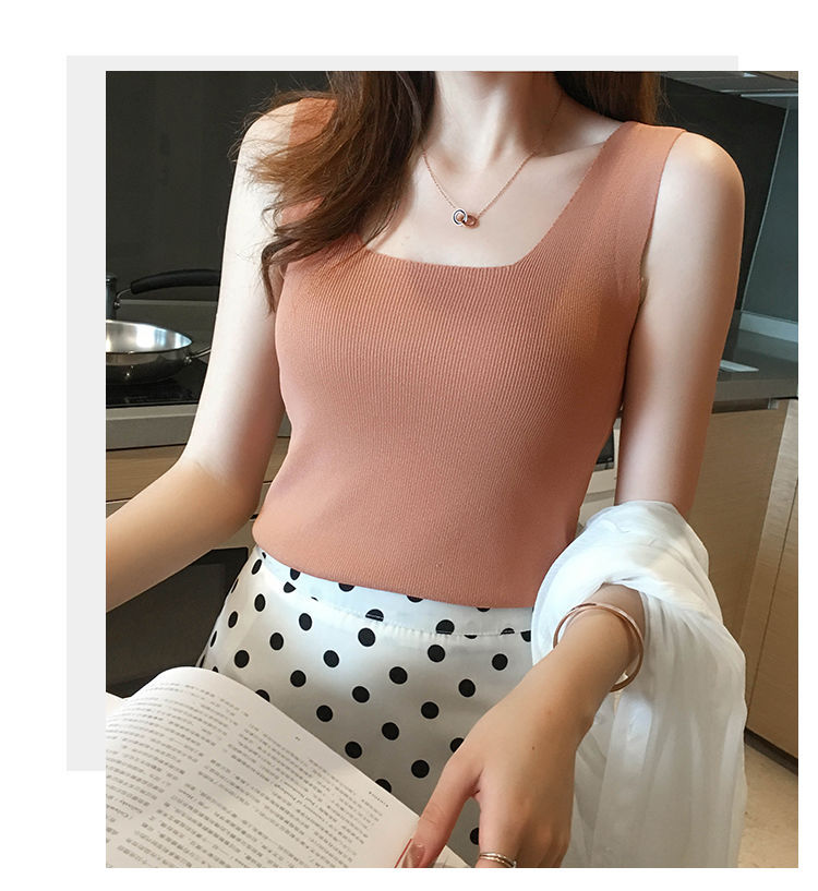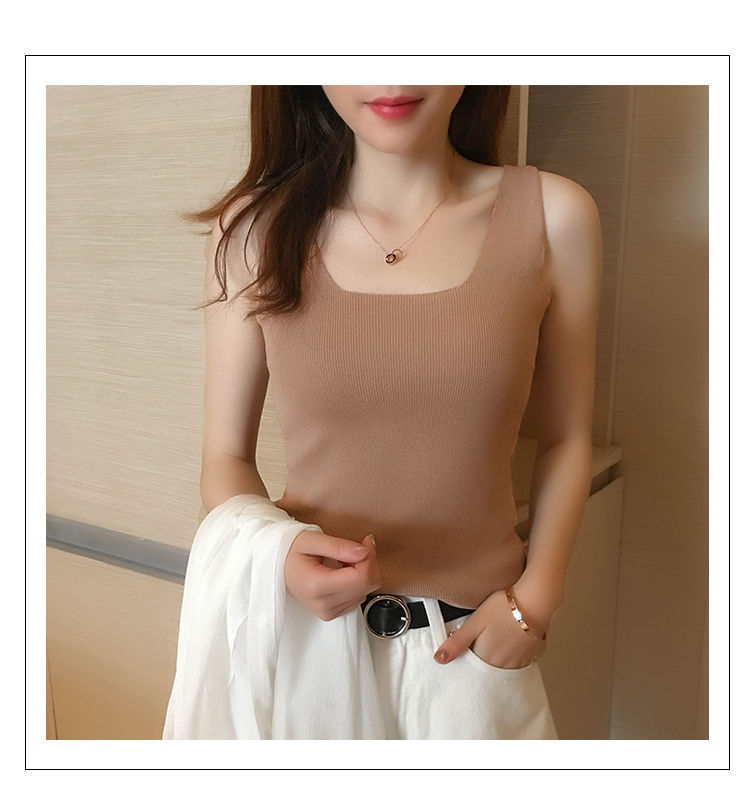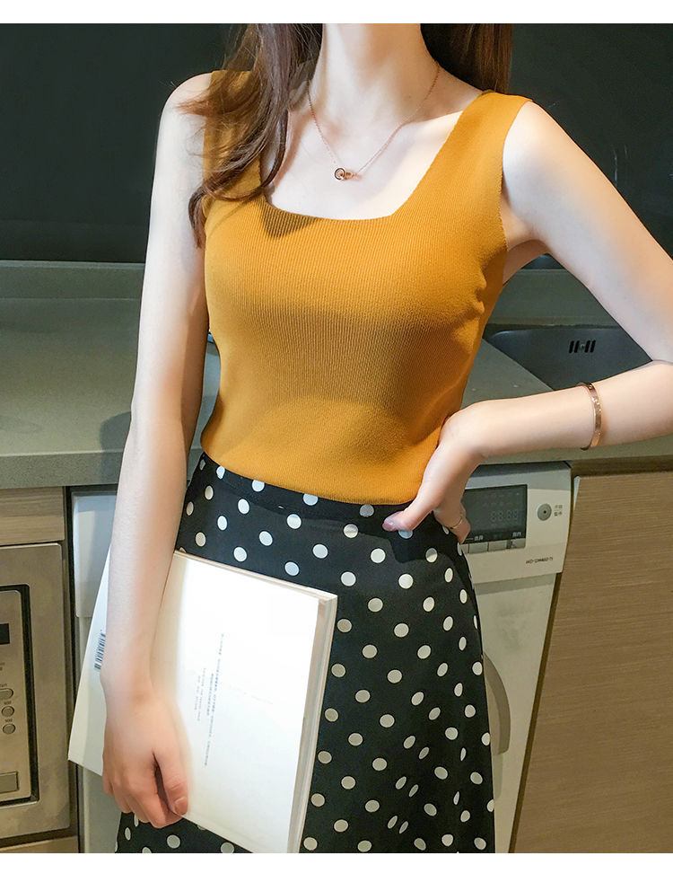 아이스 실크 캐미솔 여성의 가을 슬림 착용 섹시한 민소매 니트 바닥 셔츠 재킷 머리카락의 세대