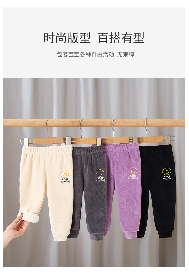 어린이 두꺼운 기모 바지 가을과 겨울 착용 아기 소년과 소녀 스포츠 레저 겉옷 긴 바지 아기 따뜻한 면 바지스토어 가기