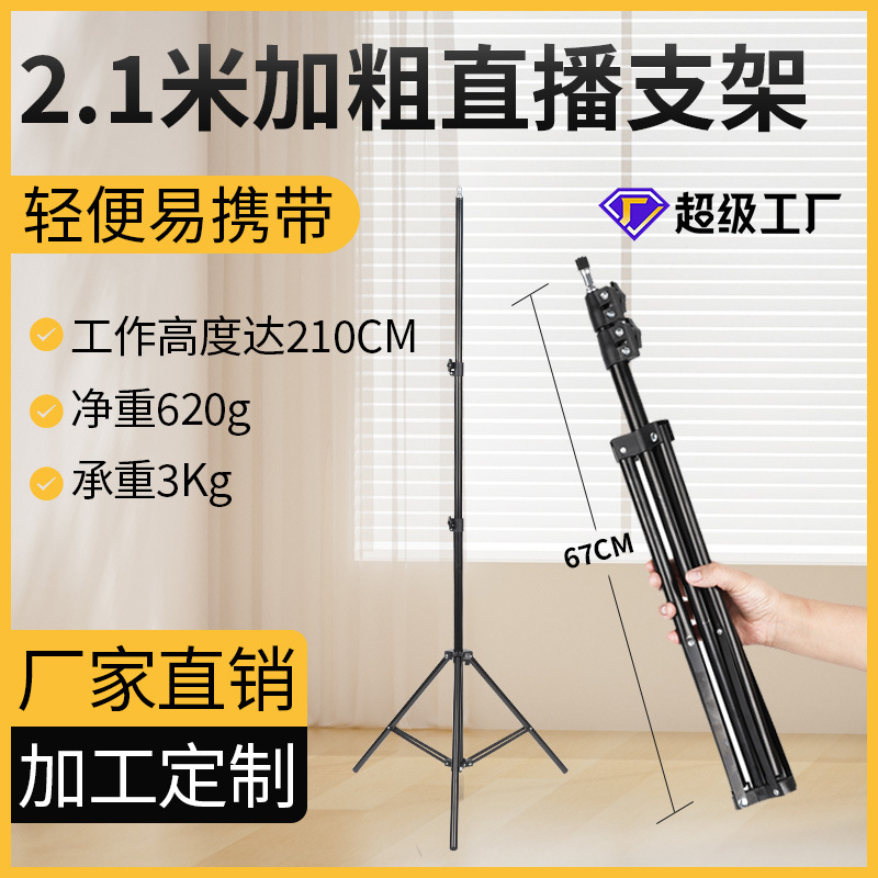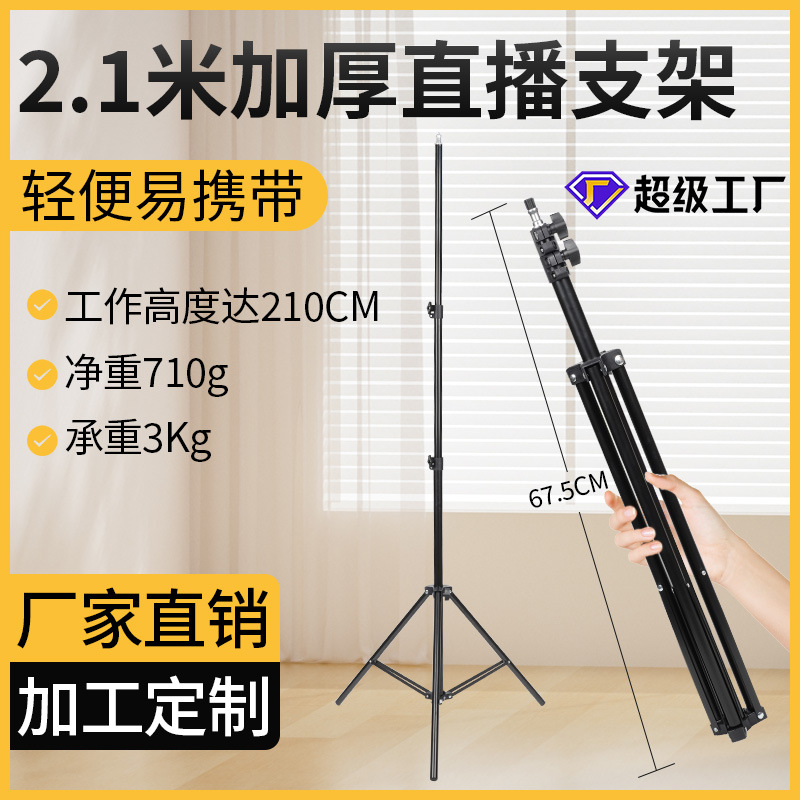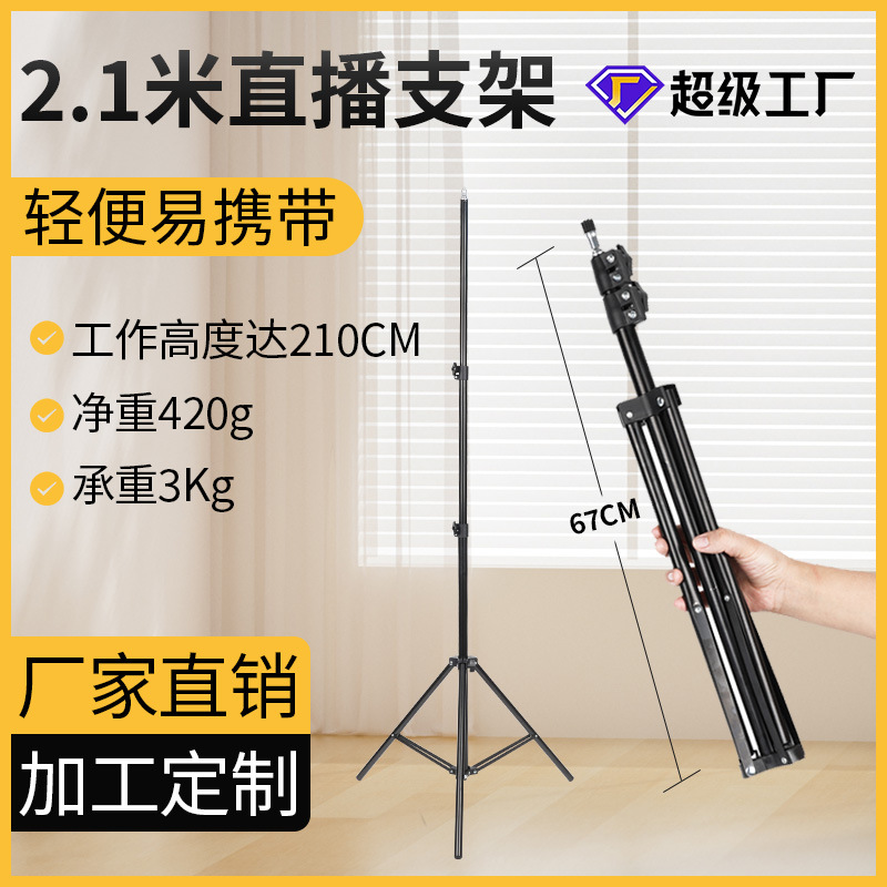2.1m 휴대 전화 라이브 방송 스탠드 1.6m 사진 및 사진 촬영을위한 바닥 삼각대 셀카 필 라이트 스탠드 도매