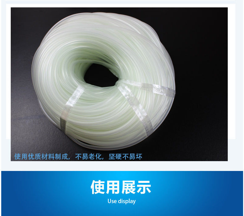【产品特点】:用于冲氧泵输氧的出气管,半透明乳白色,不同于市场上的一般气管,弹性以及材质都好于一般气管。经久耐用,。