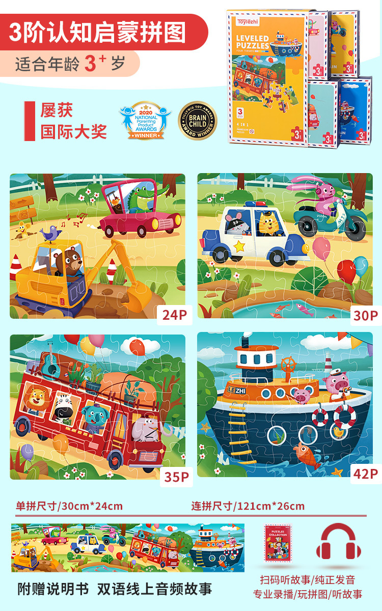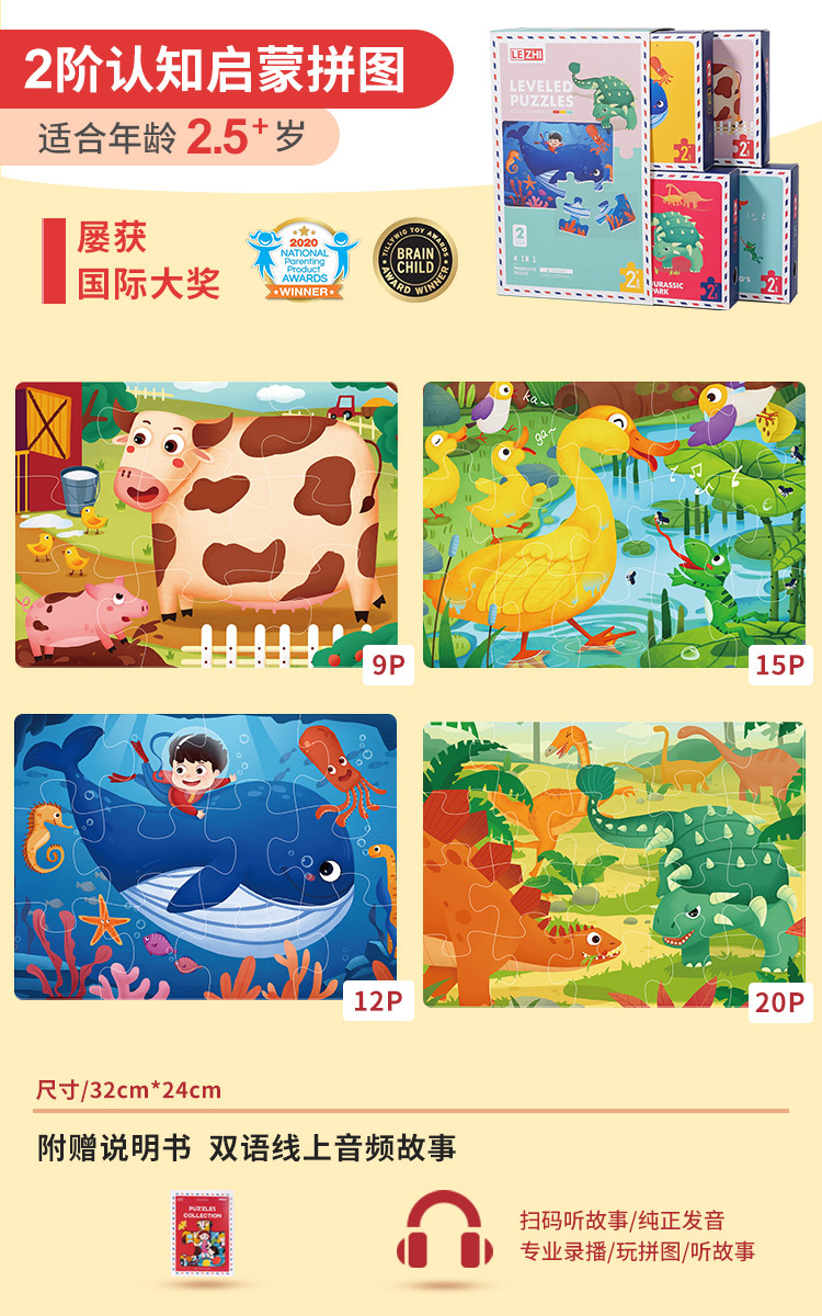 Lezhi 어린이 퍼즐 3-6 세 고급 교육 장난감 계몽주의 개발 아기 조기 교육 종이 중국어 및 영어 퍼즐스토어 가기