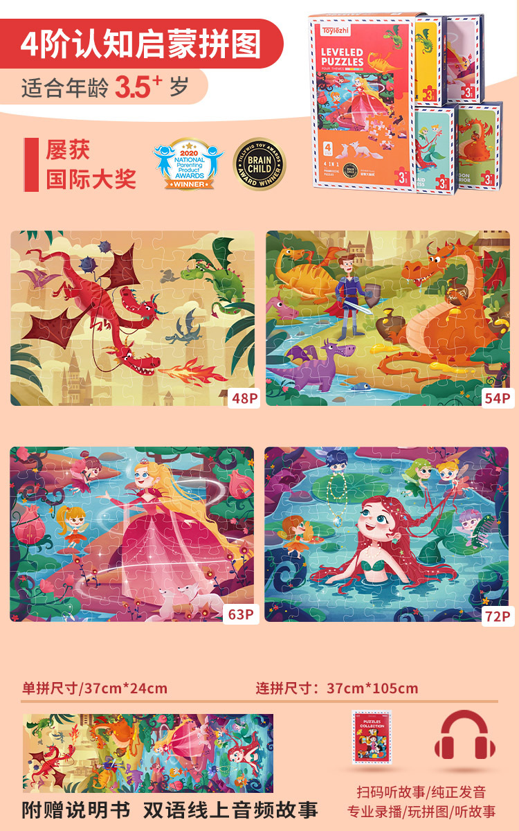 • [레벨 4] 드래곤 파이터 (3.5~4.5세 남아에게 권장)|4개 상자 포함*연속) 하나의 퍼즐