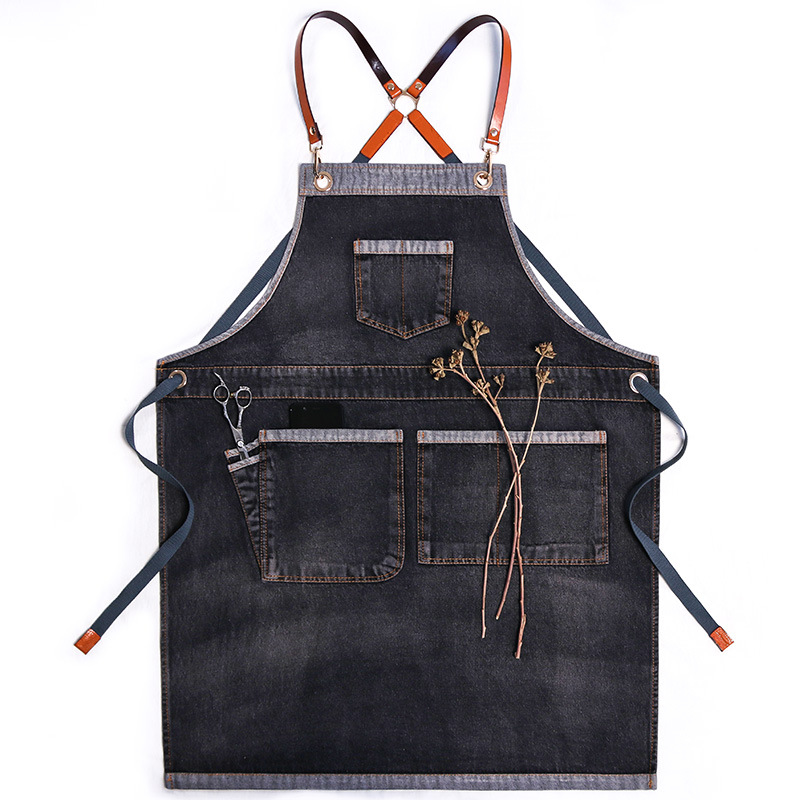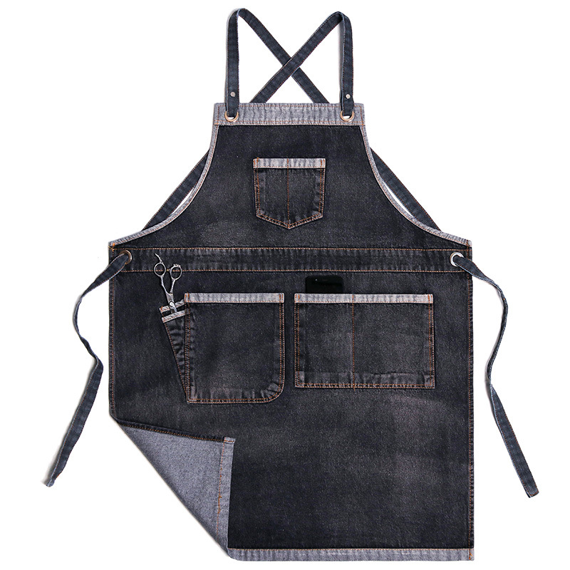 데님 앞치마 인쇄 남성과 여성의 작업복 헤어 스타일리스트 바리스타 우유 차 가게 꽃 레스토랑 툴링 로고 인쇄