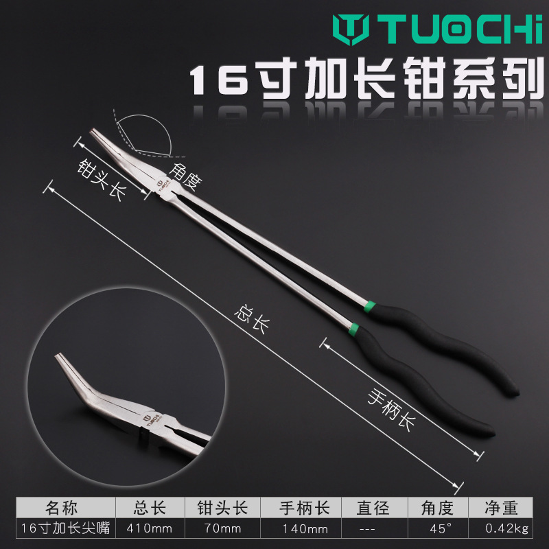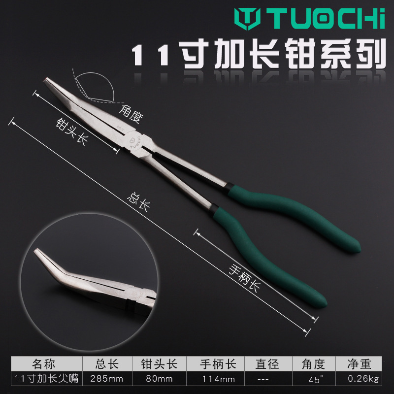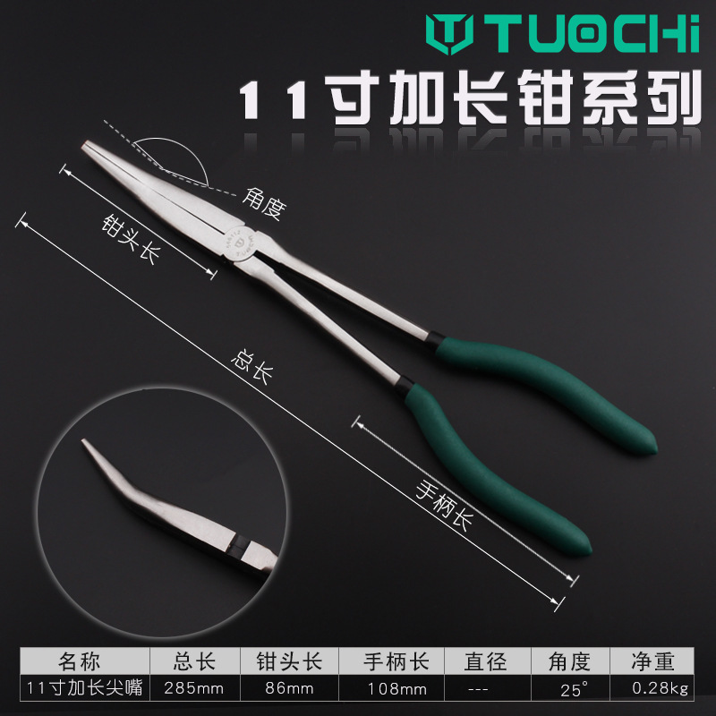 11 인치 긴 뾰족한 입 플라이어 O 형 클램핑 플라이어 구부러진 코 플라이어 스파크 플러그 플라이어 16 긴 플랫 입 플라이어스토어 가기