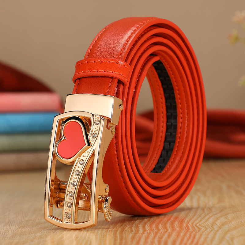 벨트 여성용 정품 가죽 자동 버클 펀치 프리 심플 패셔너블한 바지 벨트 Instagram 스타일 여성용 모든 매치 청바지 캐주얼 벨트