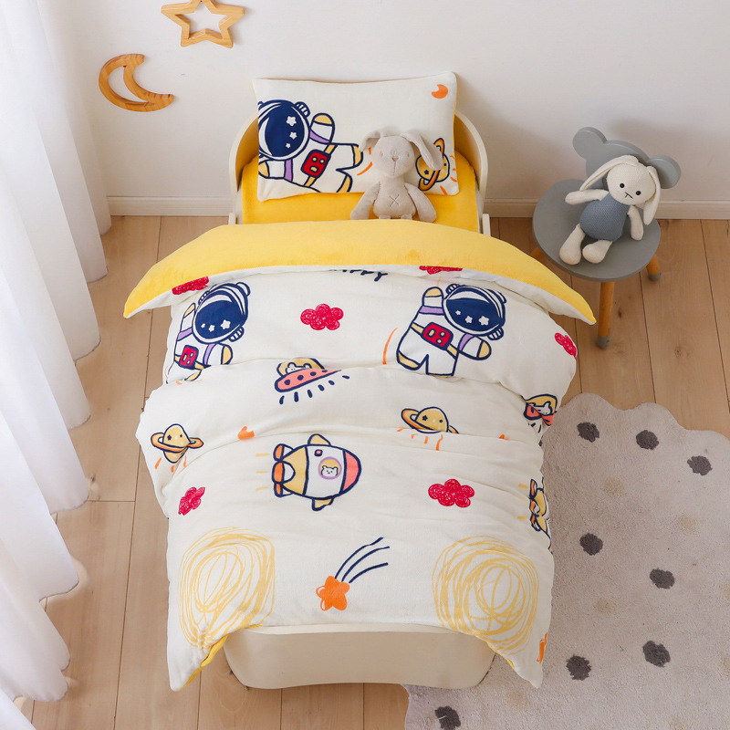 밀크 벨벳 3 종 세트 유치원 이불 6 종 세트 어린이 아기 벨벳 가을과 겨울 따뜻한 두꺼운 유아 침구