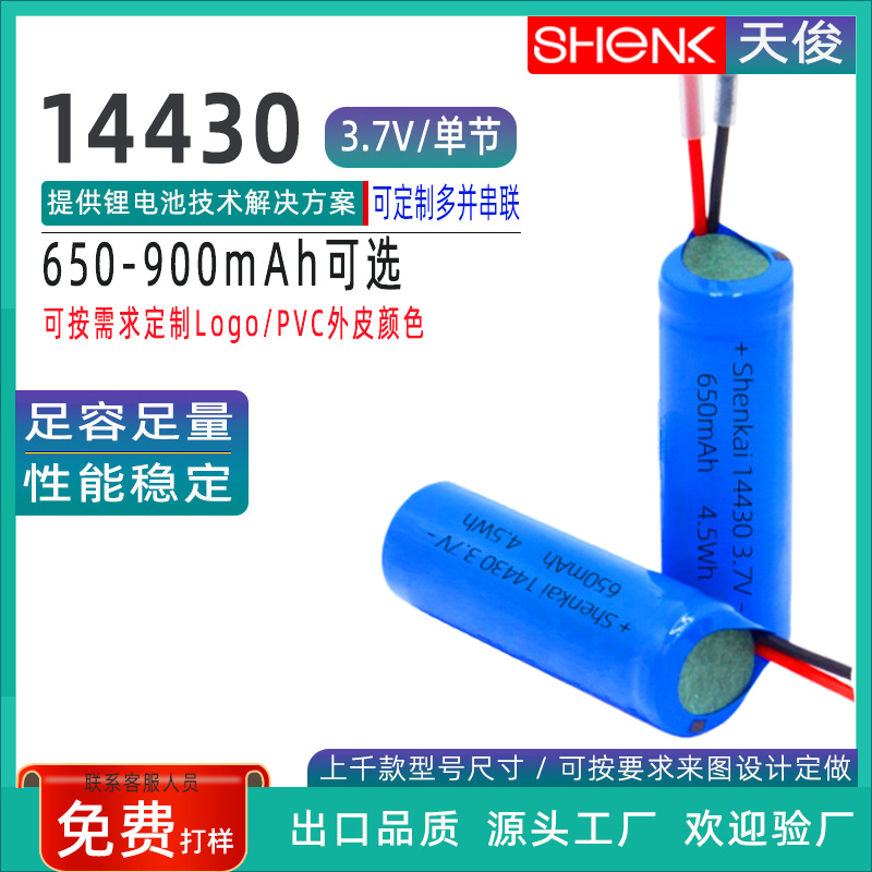 14430 단일 섹션 보호 보드 콘센트 3.7V 650mah 전기 면도기 잔디 램프 충전식 리튬 배터리