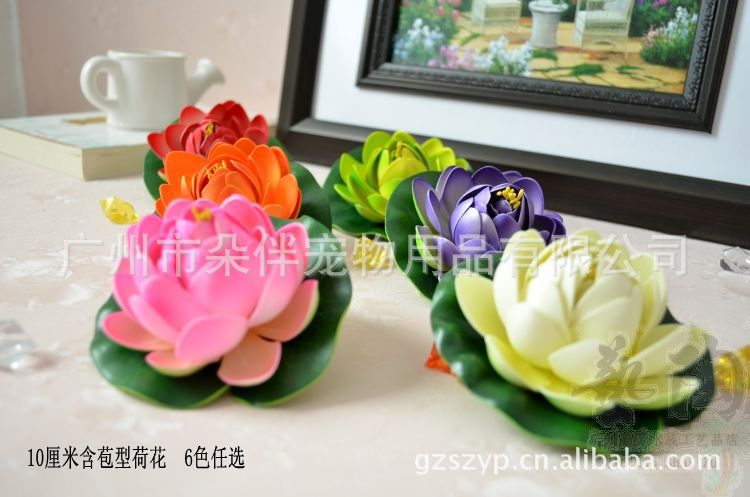 광저우 시뮬레이션 로터스 공장 도매 로터스 플라스틱 꽃 가짜 물 식물 인공 로터스 10cm