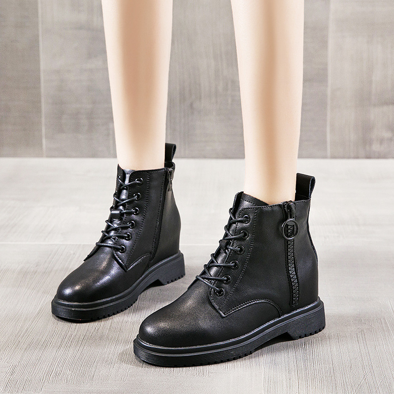 6홀 가죽 키높이 마틴 부츠 여성용 2025 가을 겨울 신상 숏부츠 여성용 두꺼운 굽 플러스 벨벳 소형 부츠 여성용