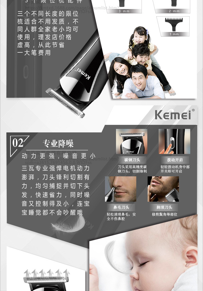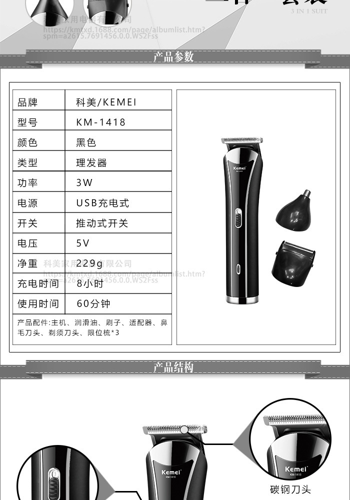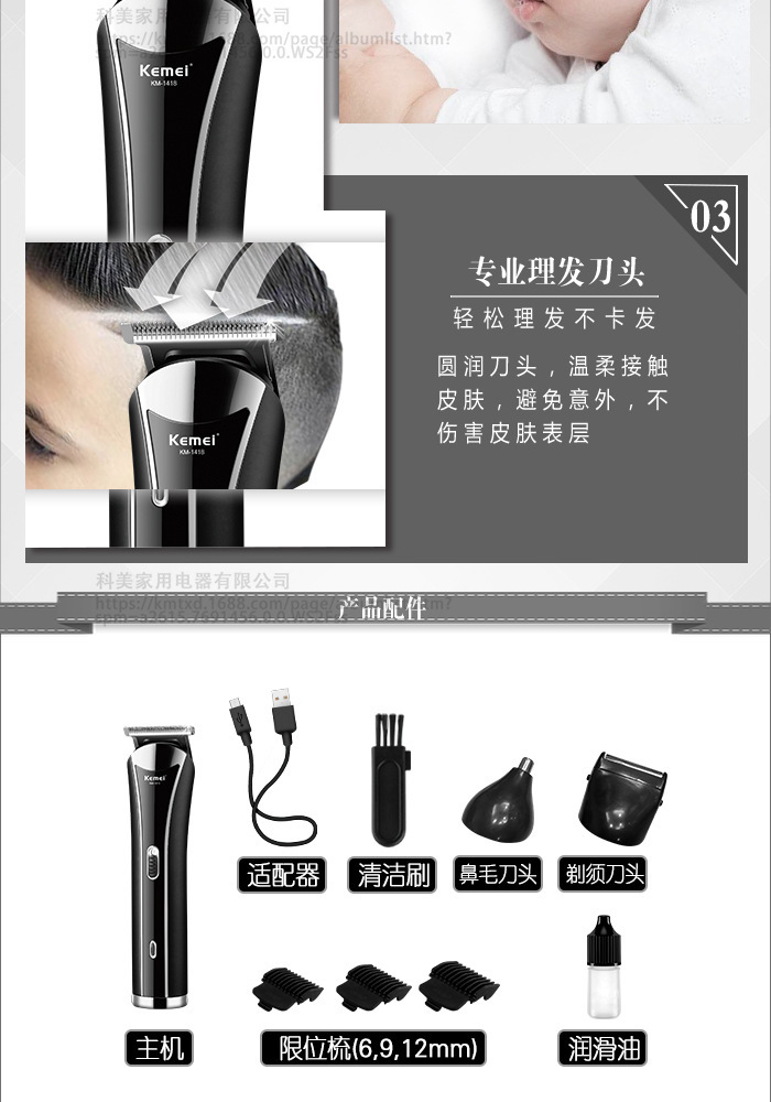 Kemei/Kemei 전기 헤어 클리퍼 세트 KM-1418 면도 코 헤어 트리밍 사이드 번 3 in 1 전기 클리퍼스토어 가기