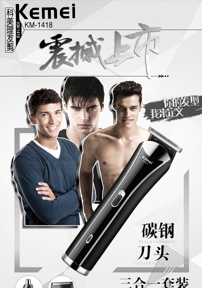 Kemei/Kemei 전기 헤어 클리퍼 세트 KM-1418 면도 코 헤어 트리밍 사이드 번 3 in 1 전기 클리퍼