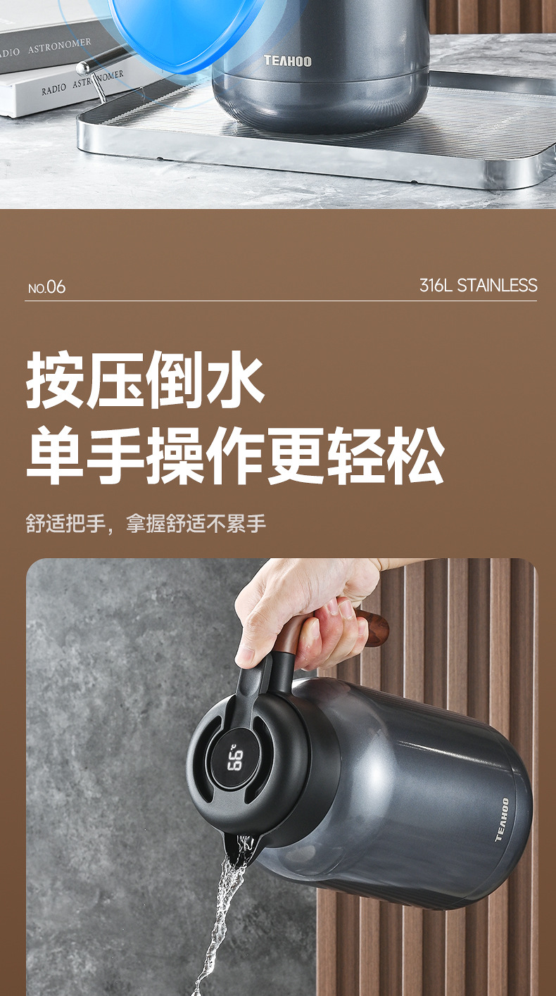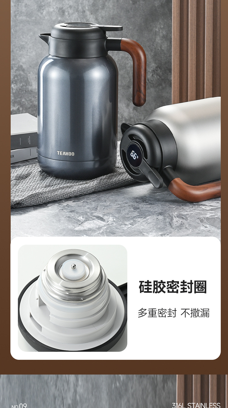 Qihu 보온병 대용량 316 스테인레스 스틸 보온병 주전자 2 리터 가정용 보온병 보온병 스튜 주전자 레터링