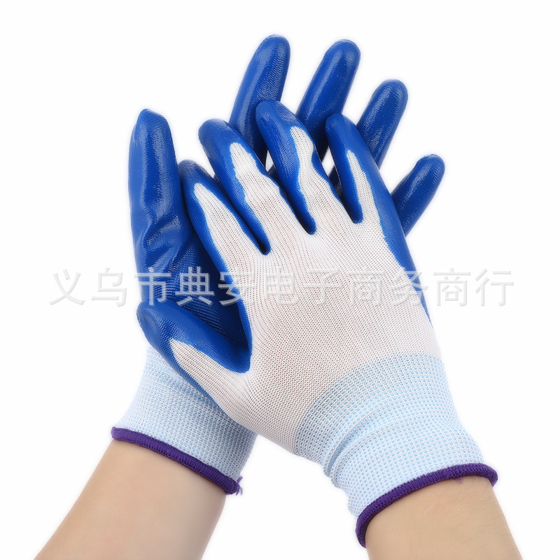 Bai Lan Ding Qing 미끄럼 방지 내마모성 장갑 순수 고무 13 바늘 나일론 블루 Ding Qing 노동 보호 장갑 제조업체스토어 가기