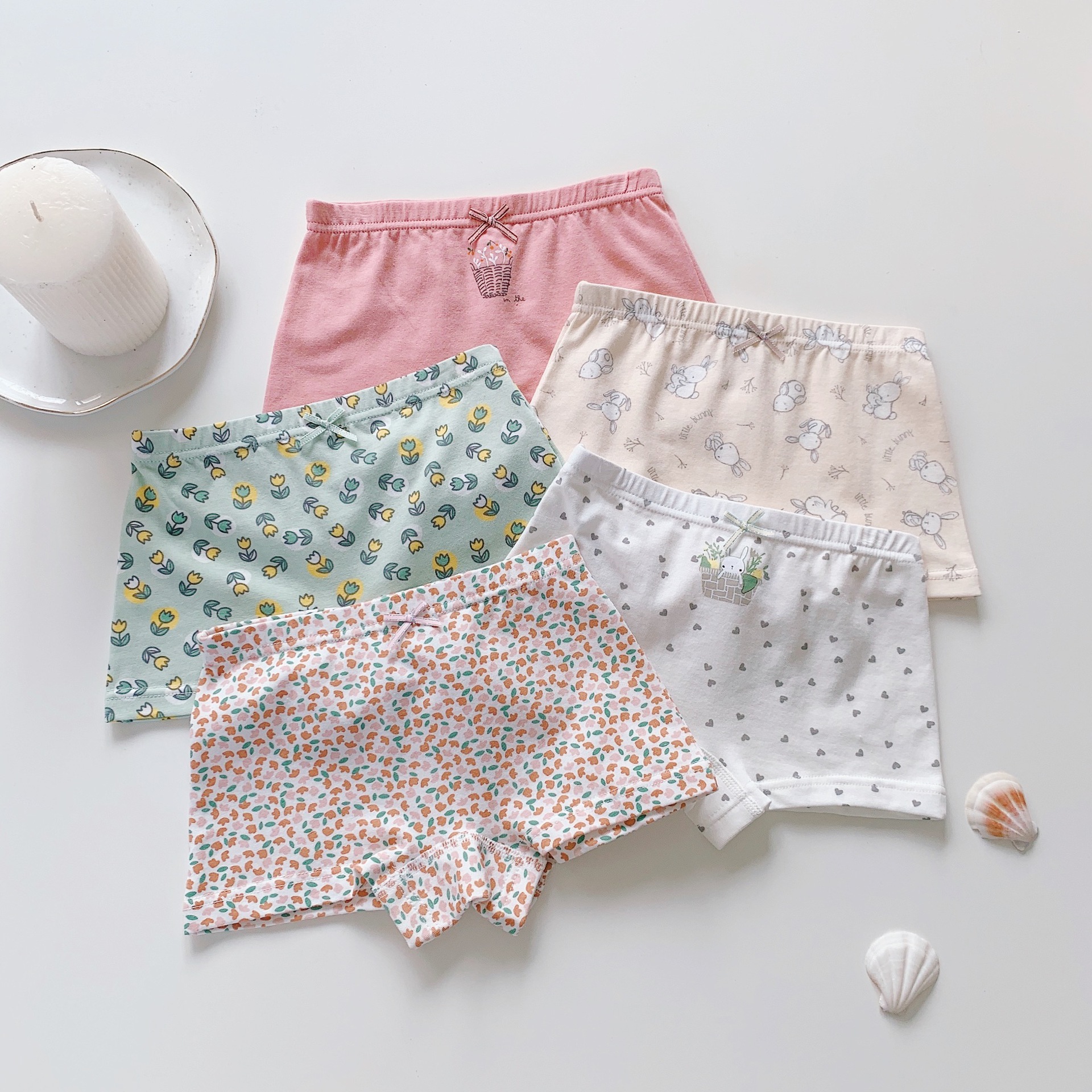 미모 딸 아동 속옷 순면 복서 반바지 해외 무역 귀여운 한국 작은 꽃 5 도매