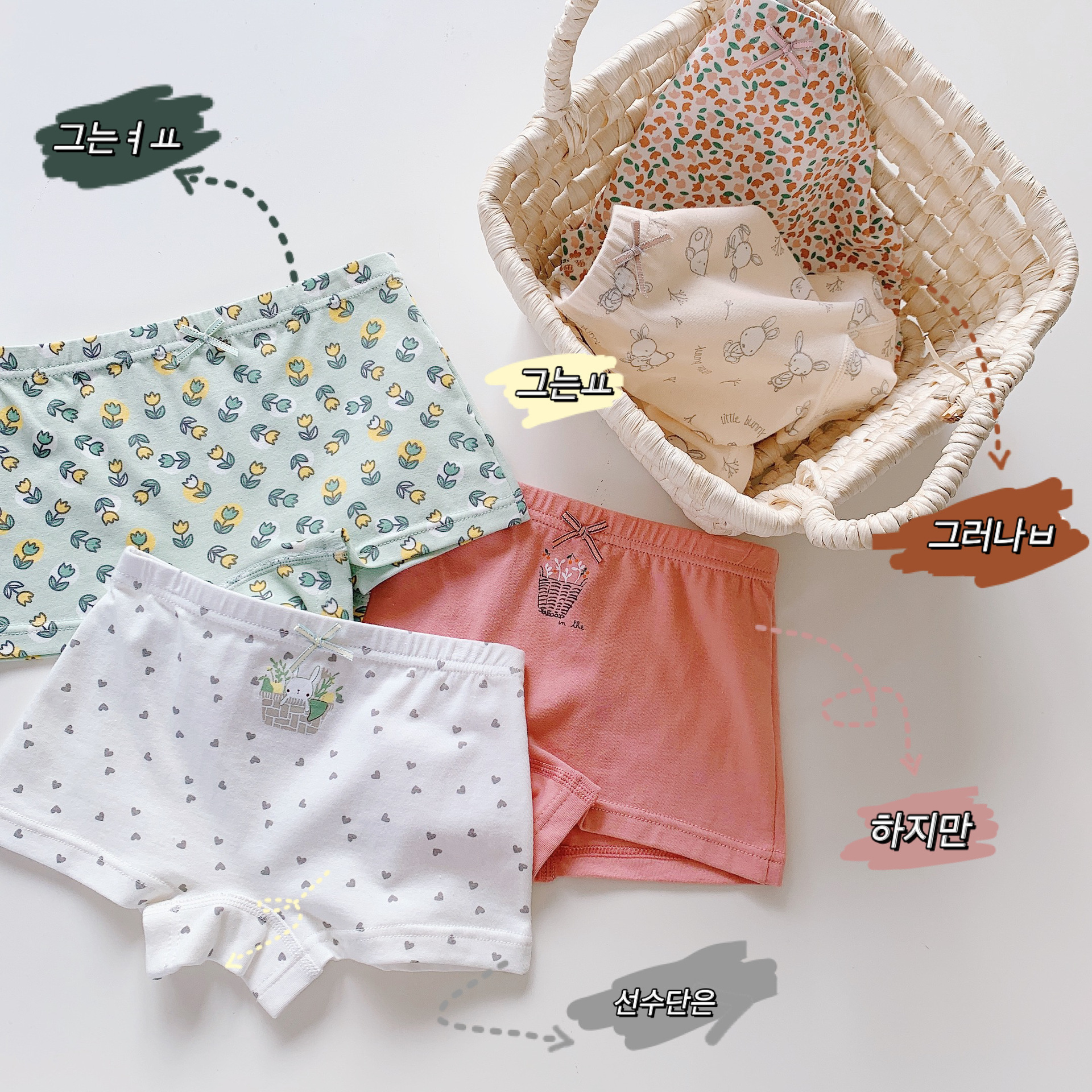미모 딸 아동 속옷 순면 복서 반바지 해외 무역 귀여운 한국 작은 꽃 5 도매스토어 가기