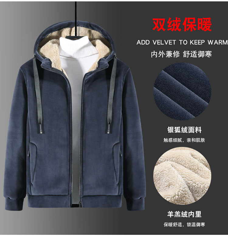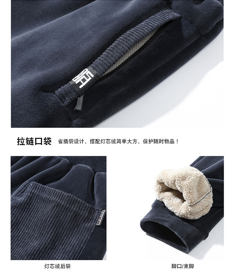 富贵鸟加肥加大羊羔绒运动套装男冬季加绒加厚中老年爸爸装两件套