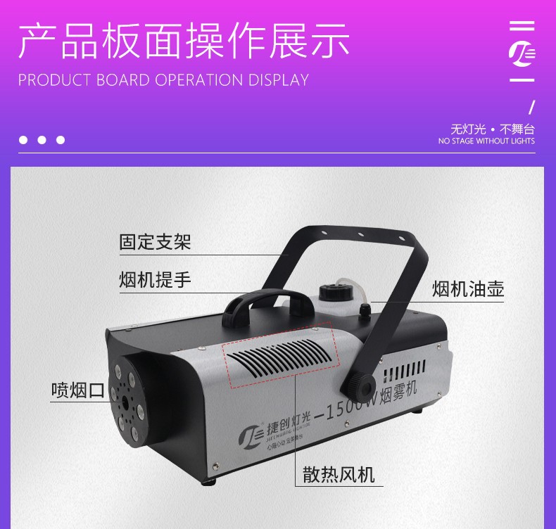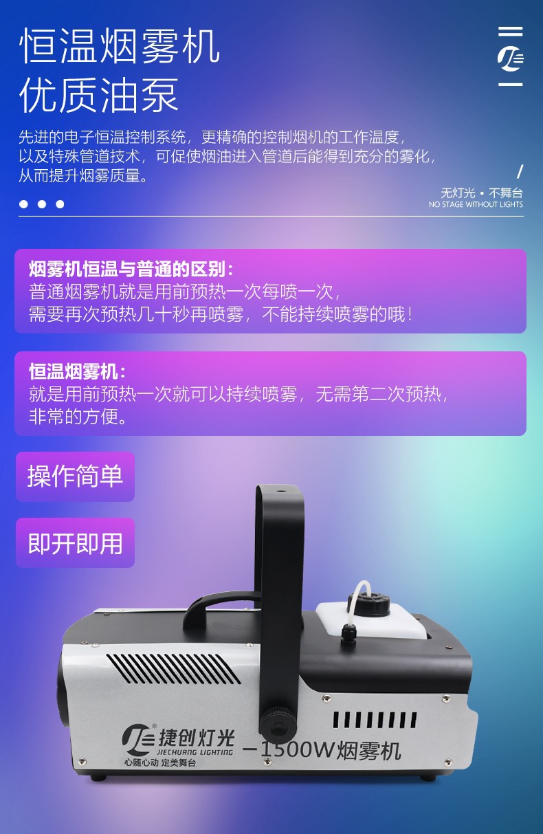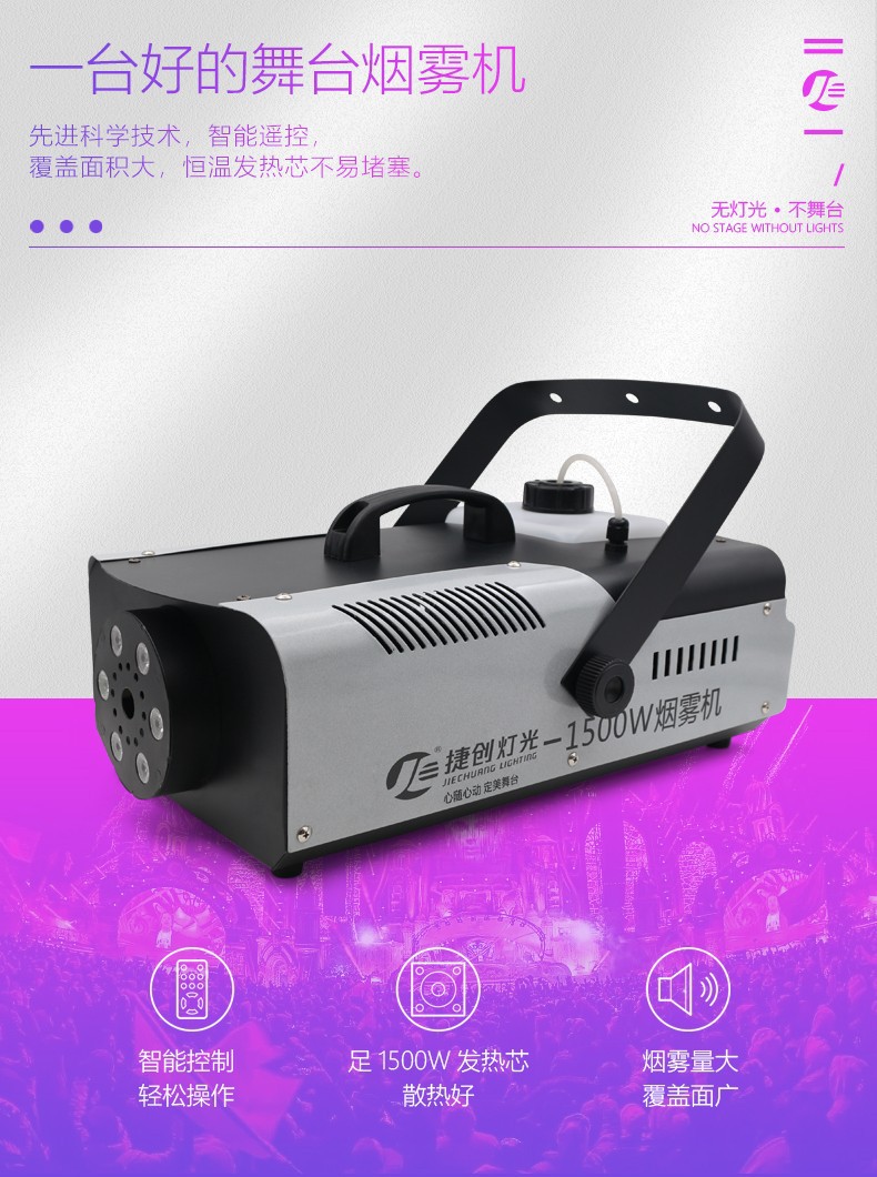 Jiechuang 1500w 전자 담배 대형 연기 기계 무대 특수 항온 다채로운 연기 기계 바 무대 유형 국경 간스토어 가기