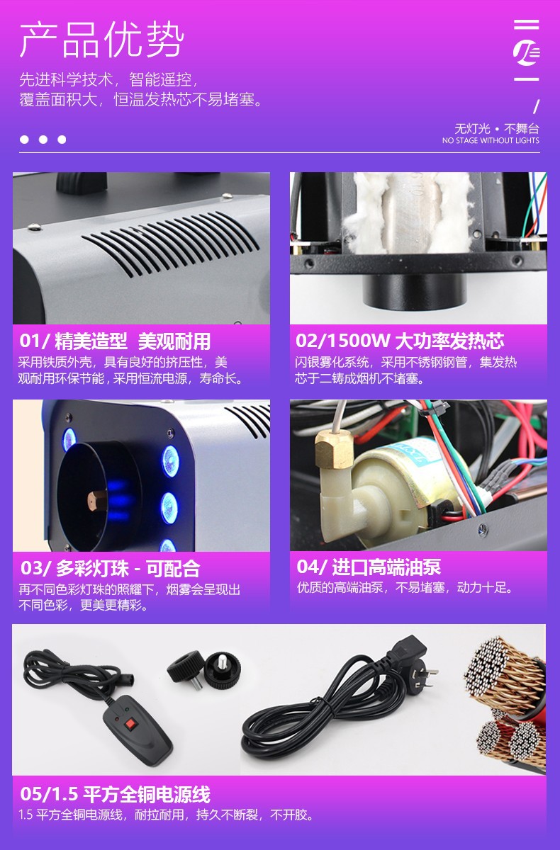 • (원격 제어 + 와이어 제어) 1500 와트 화려한 클래식 안개 기계