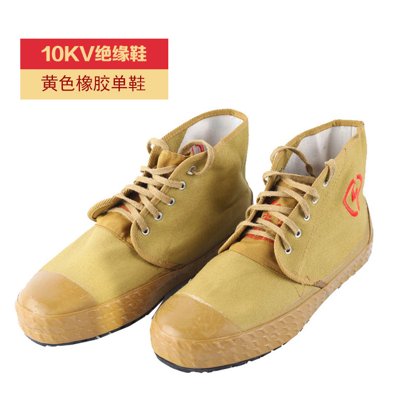 Jinbuan 5KV 10KV 절연 신발 전기 신발 캔버스 노동 보호 미끄럼 방지 통기성 경량 내마모성 노란색 고무 노동 보호 신발
