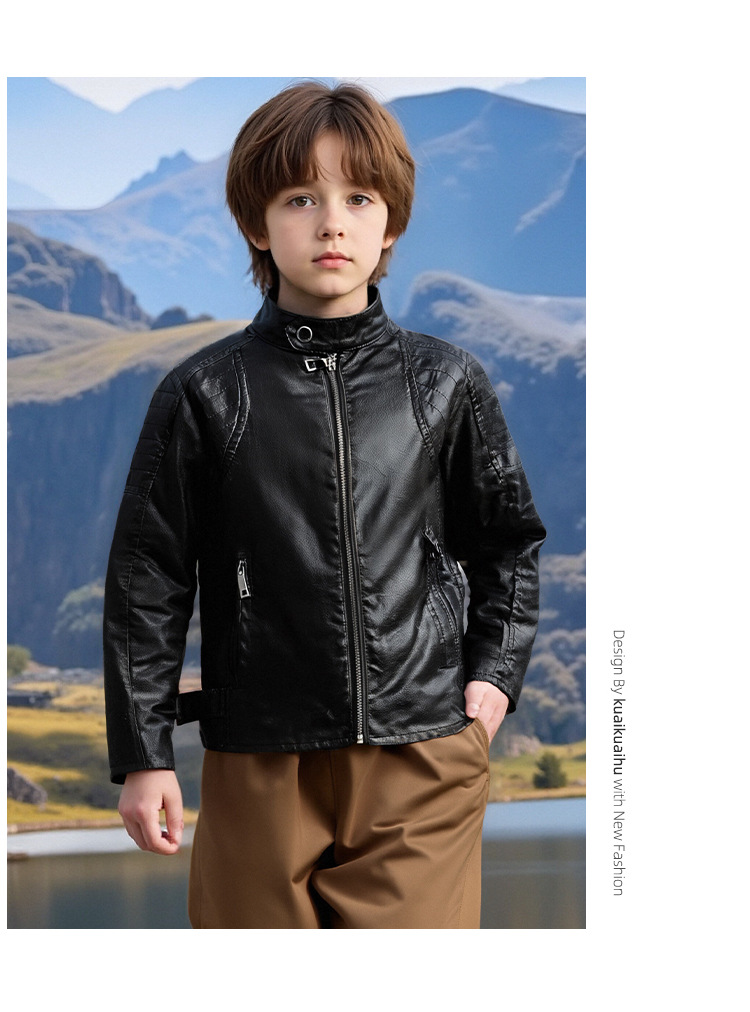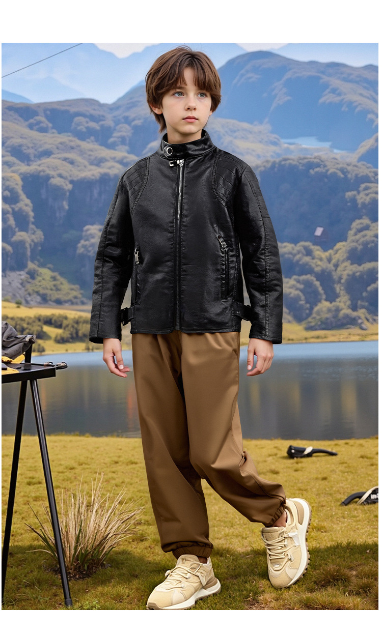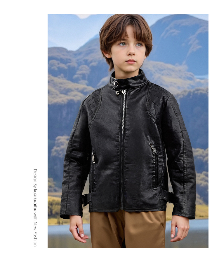 아동복 아동 가죽 자켓 오토바이 자켓 유럽과 미국 2025 봄, 가을 새로운 스타일 아동 소년 벨벳 베이비 가죽 자켓