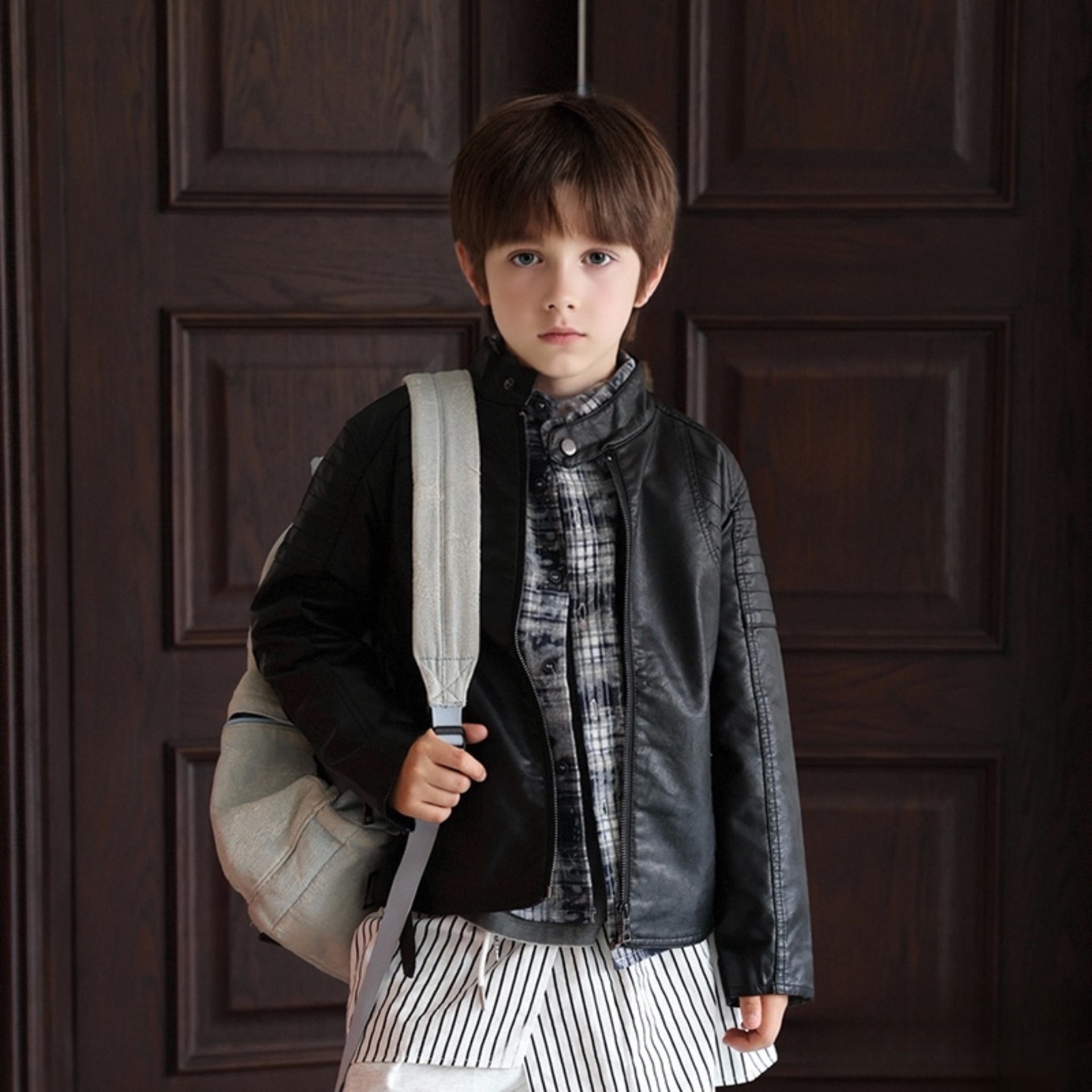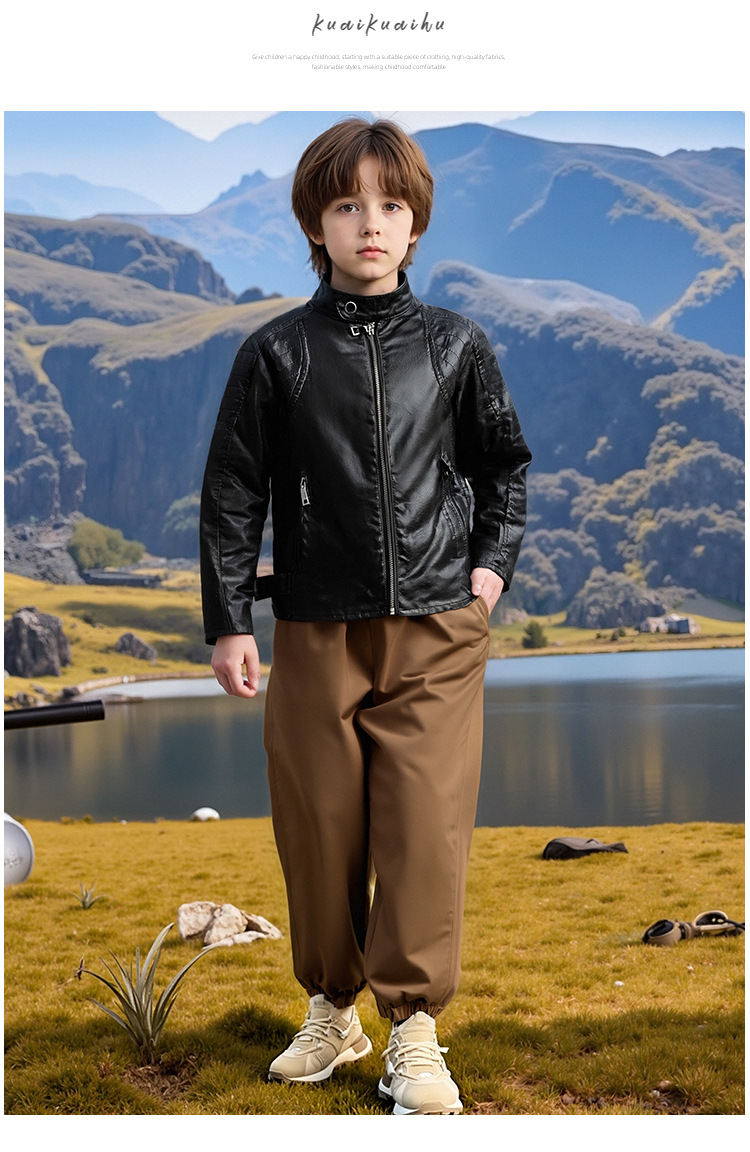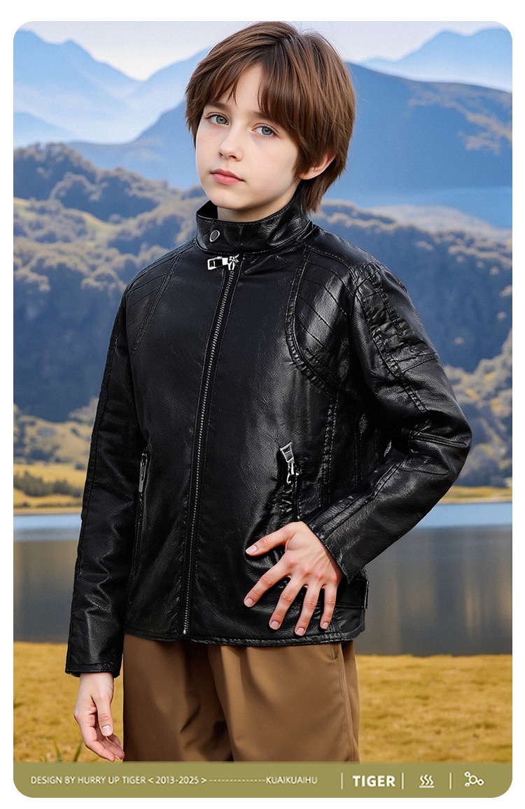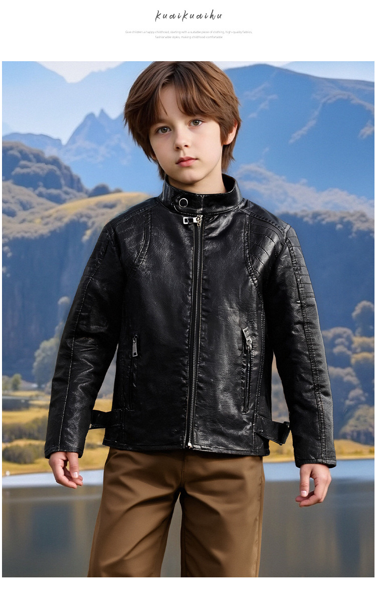 아동복 아동 가죽 자켓 오토바이 자켓 유럽과 미국 2025 봄, 가을 새로운 스타일 아동 소년 벨벳 베이비 가죽 자켓스토어 가기