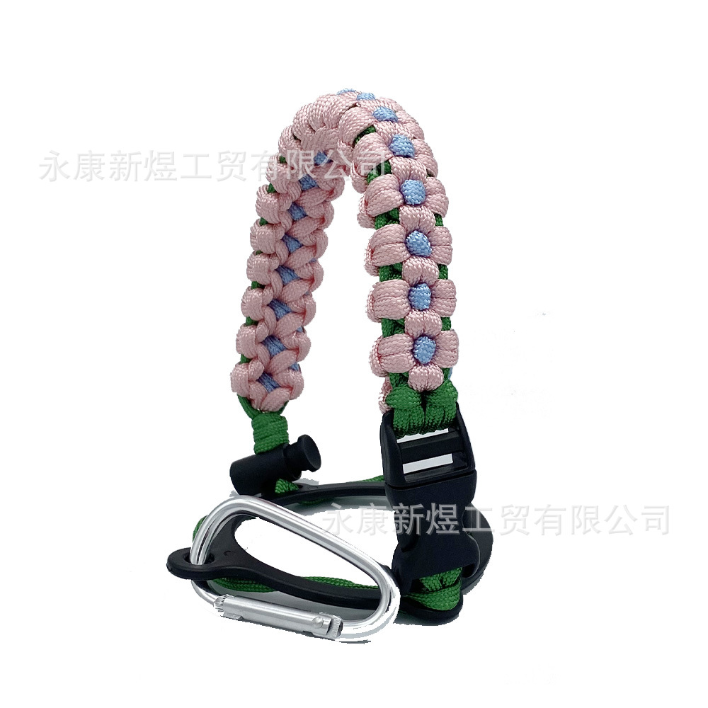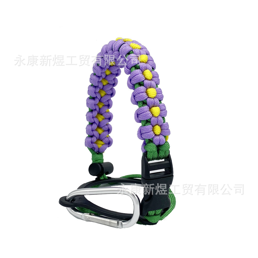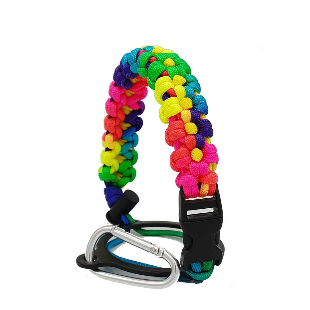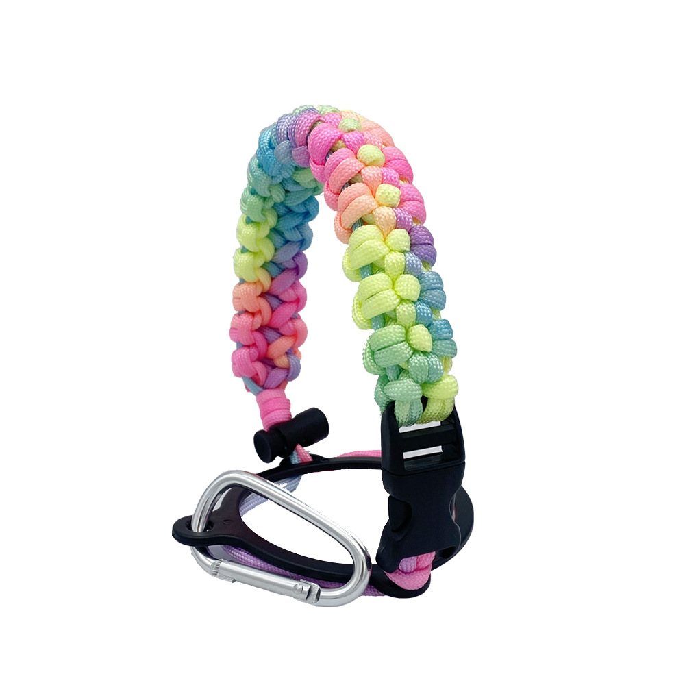 野外探险,必要时可以拆开当作一段绳子用。紧急情况下可以止血、制作陷阱、捆扎临时帐篷、穿套装备防止丢失等等功能,伞绳直径4毫米,单绳拉力在220斤左右。单色手链拆开伞绳总长约6米。