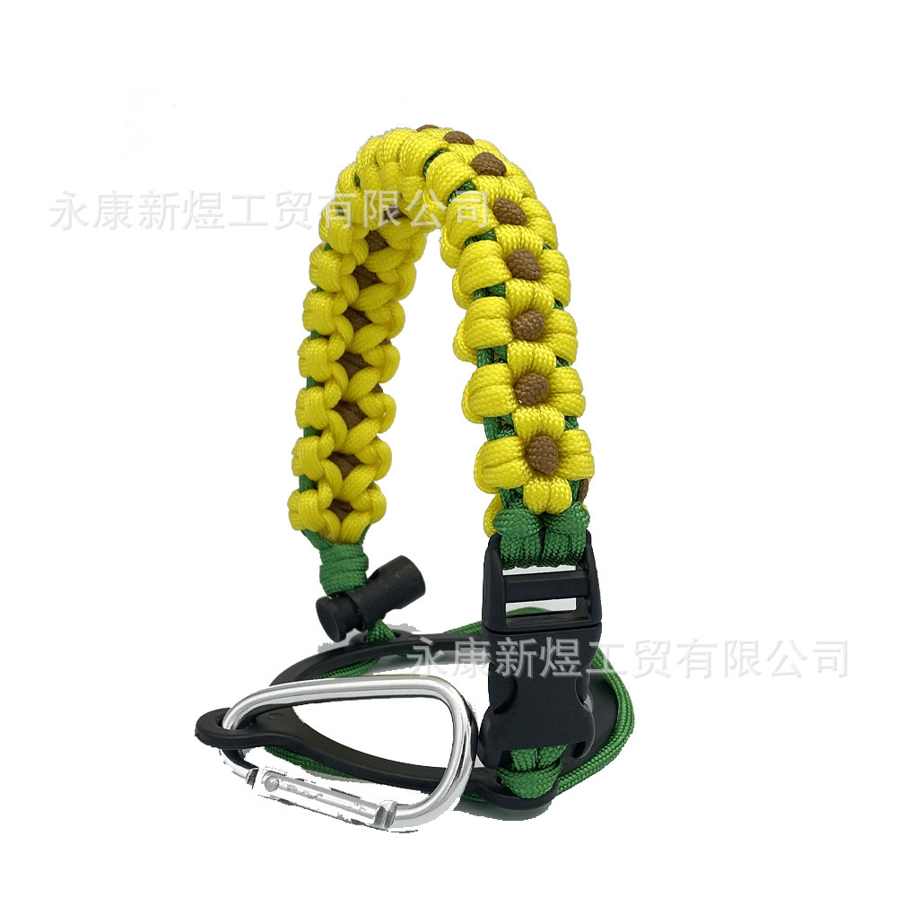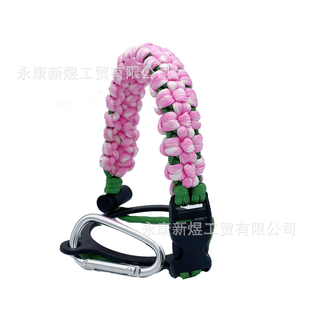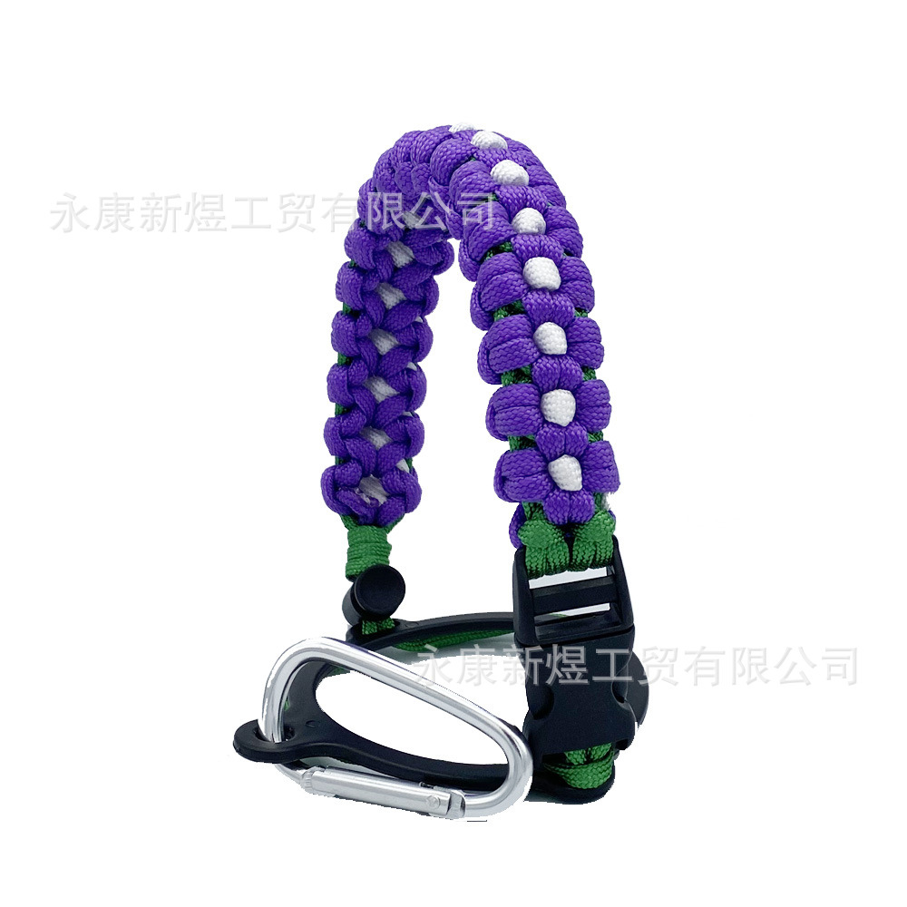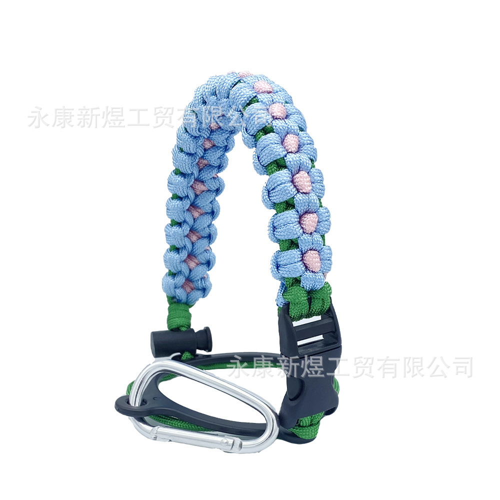 野外探险,必要时可以拆开当作一段绳子用。紧急情况下可以止血、制作陷阱、捆扎临时帐篷、穿套装备防止丢失等等功能,伞绳直径4毫米,单绳拉力在220斤左右。单色手链拆开伞绳总长约6米。