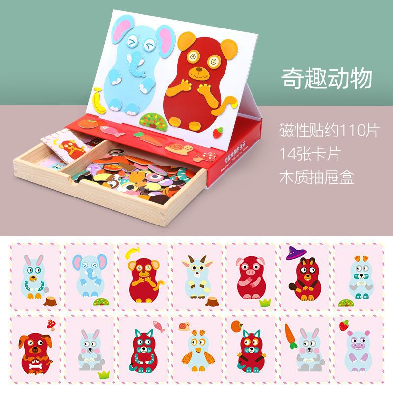어린이 재미있는 장면 동물 자기 쪽모이 세공 선물 상자 유치원 조기 교육 개발 퍼즐 장난감스토어 가기