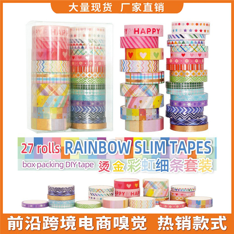 국경 특수 27 롤 무지개 얇은 스트립 브론징 DIY 컬러 손 계정 스티커 손 찢기 및 종이 테이프 세트스토어 가기