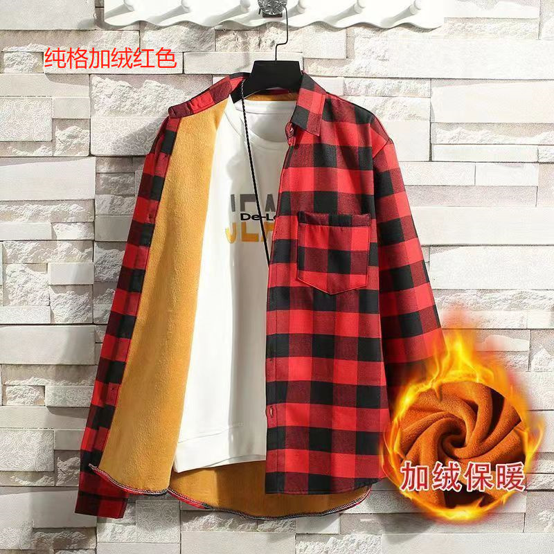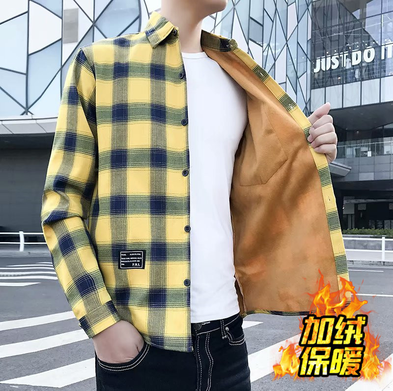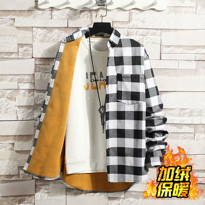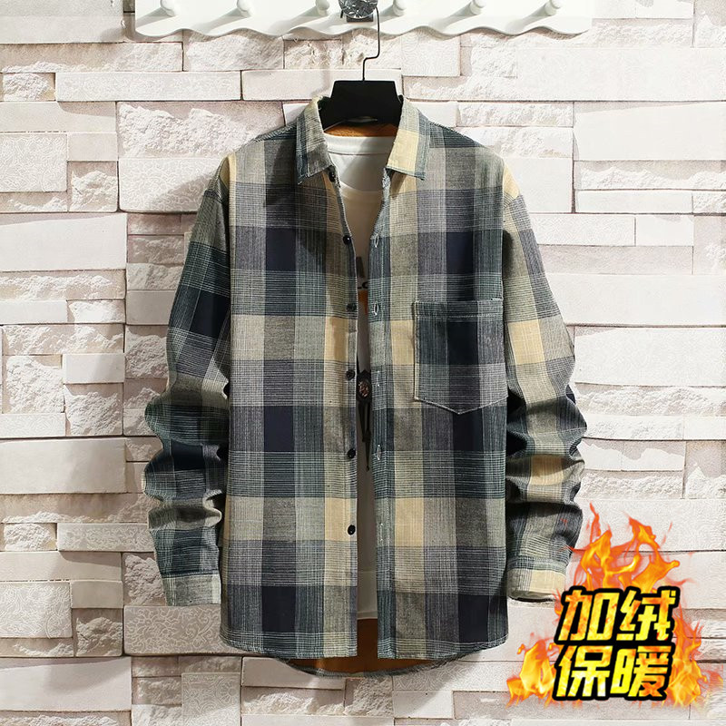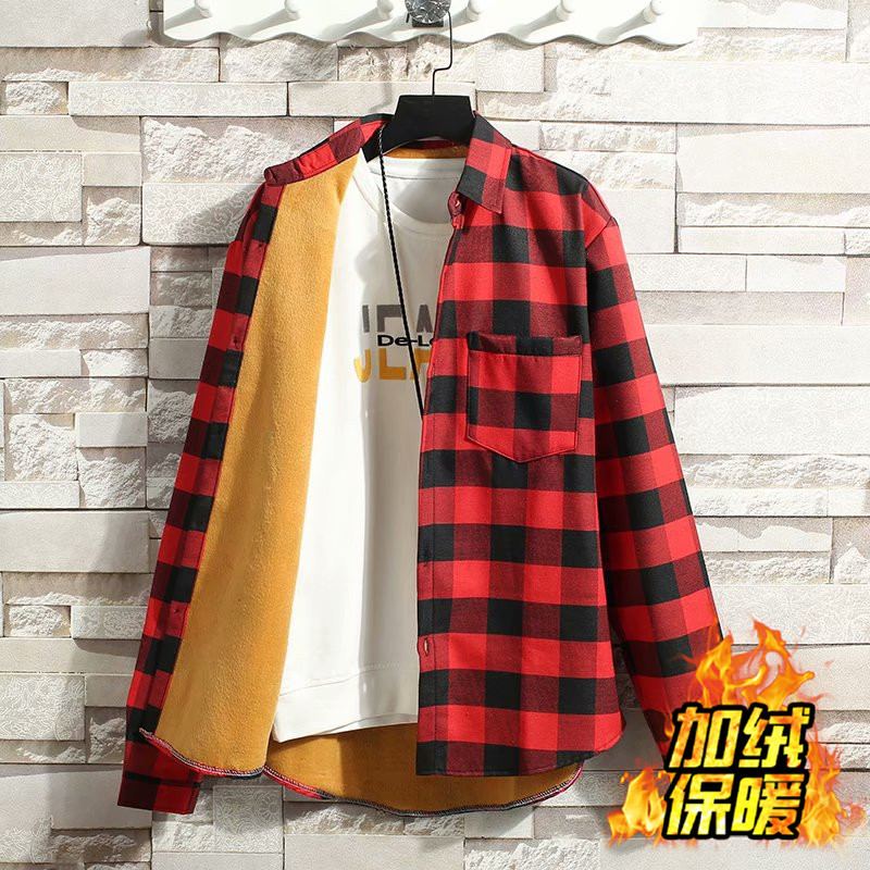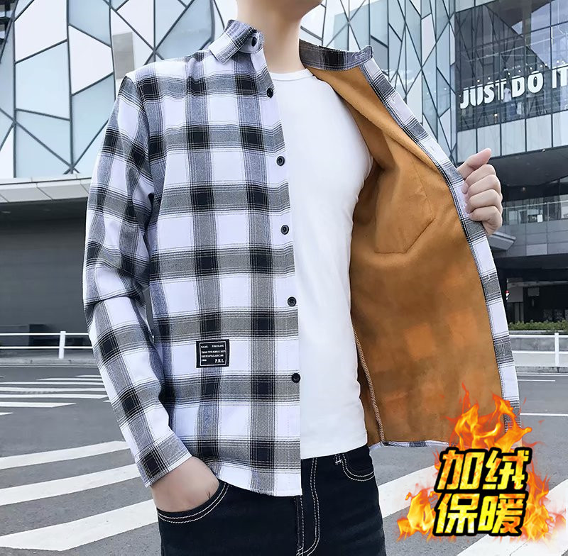 기모 두꺼운 겨울 셔츠 남자의 격자 무늬 긴 소매 유행 느슨한 한국 유행 잘 생긴 남자의 캐주얼 따뜻한 셔츠스토어 가기