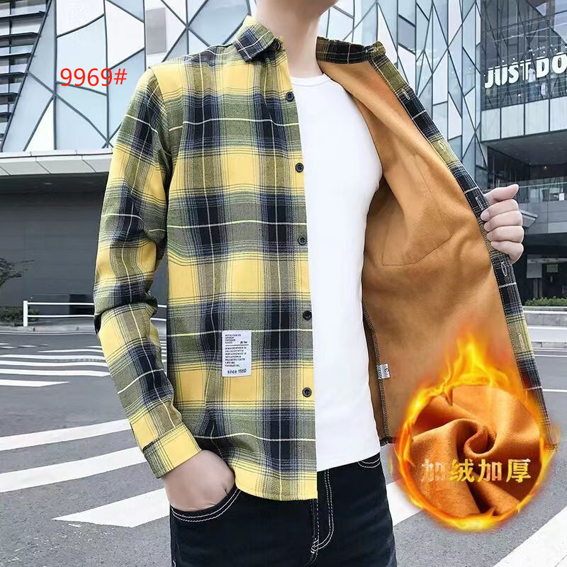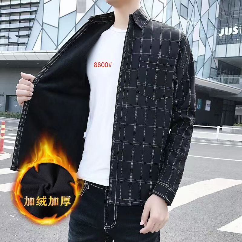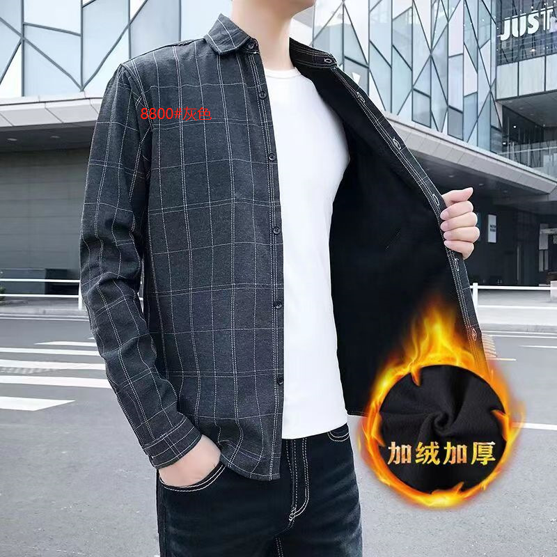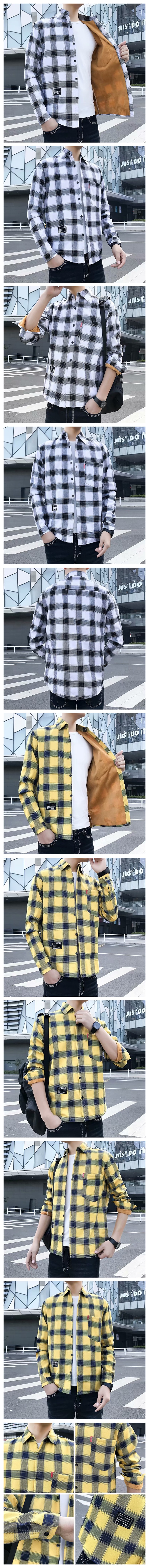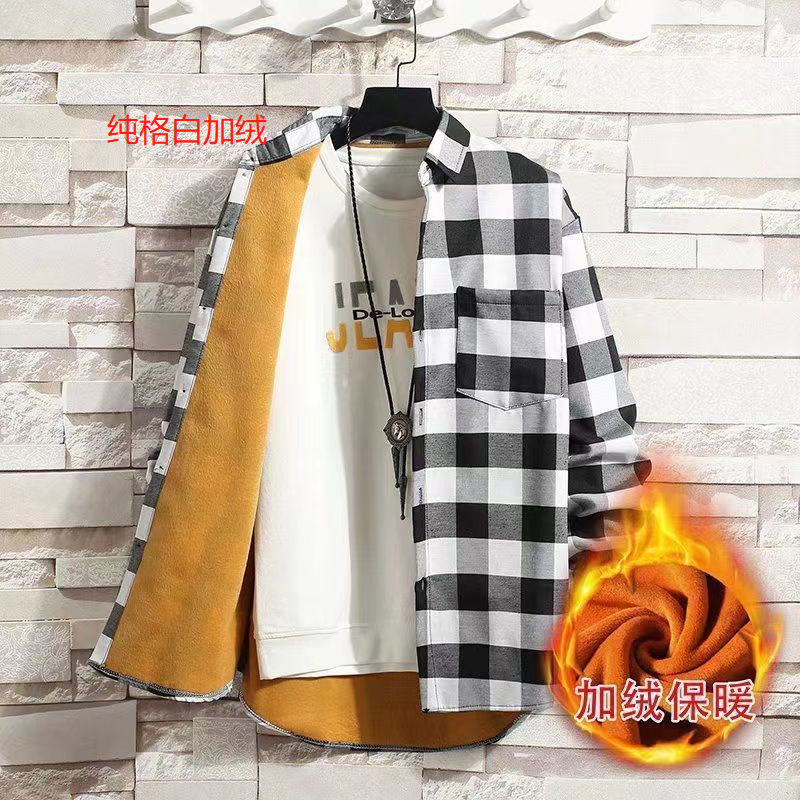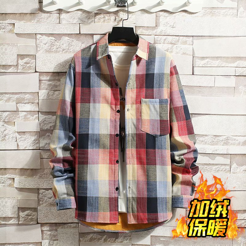 기모 두꺼운 겨울 셔츠 남자의 격자 무늬 긴 소매 유행 느슨한 한국 유행 잘 생긴 남자의 캐주얼 따뜻한 셔츠스토어 가기