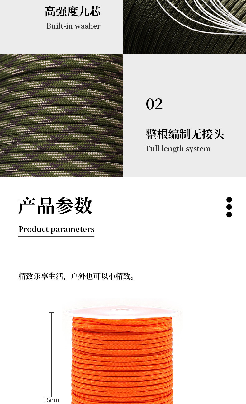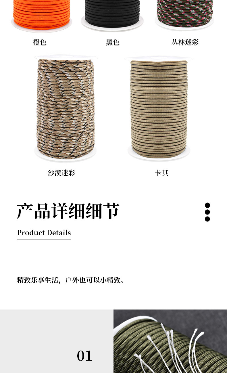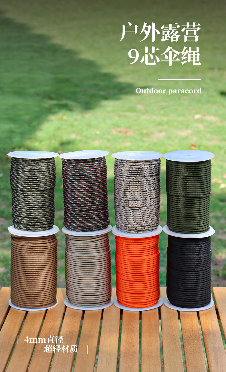 야외 캠핑 9 코어 550 우산 로프 100 m 낙하산 견인 구조 번들 텐트 로프 등반 로프스토어 가기