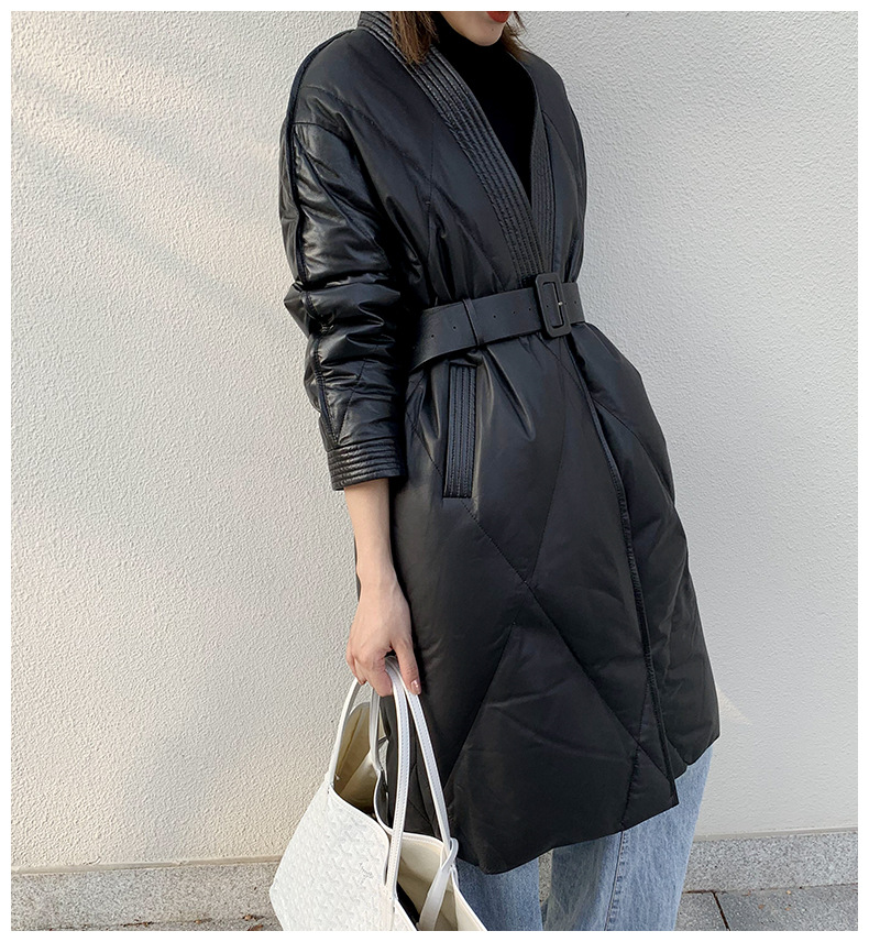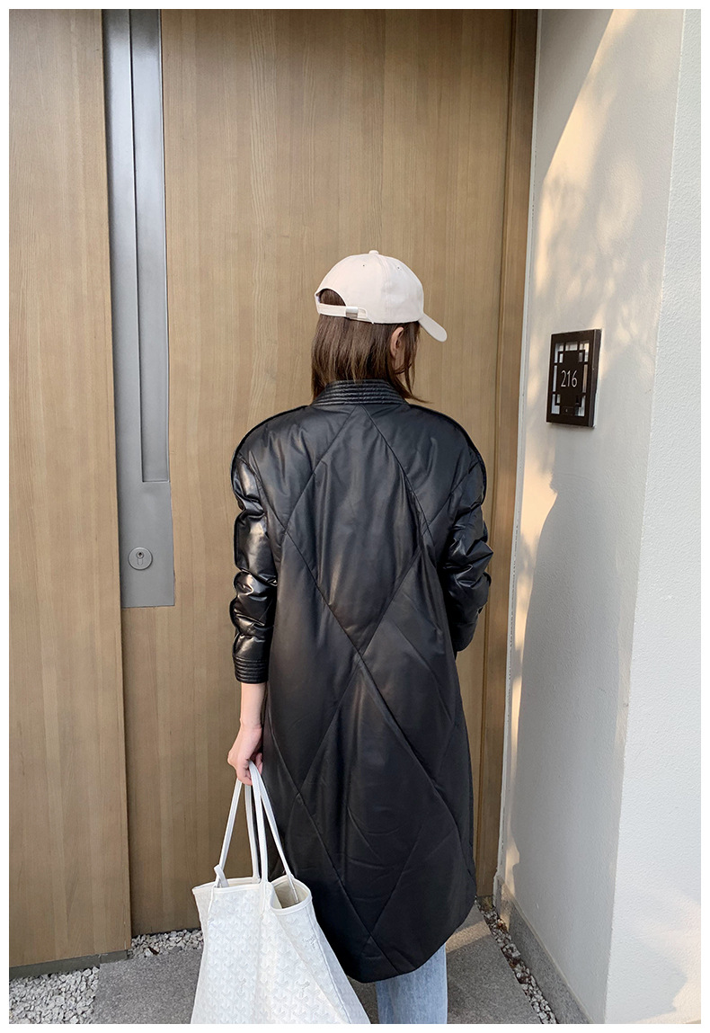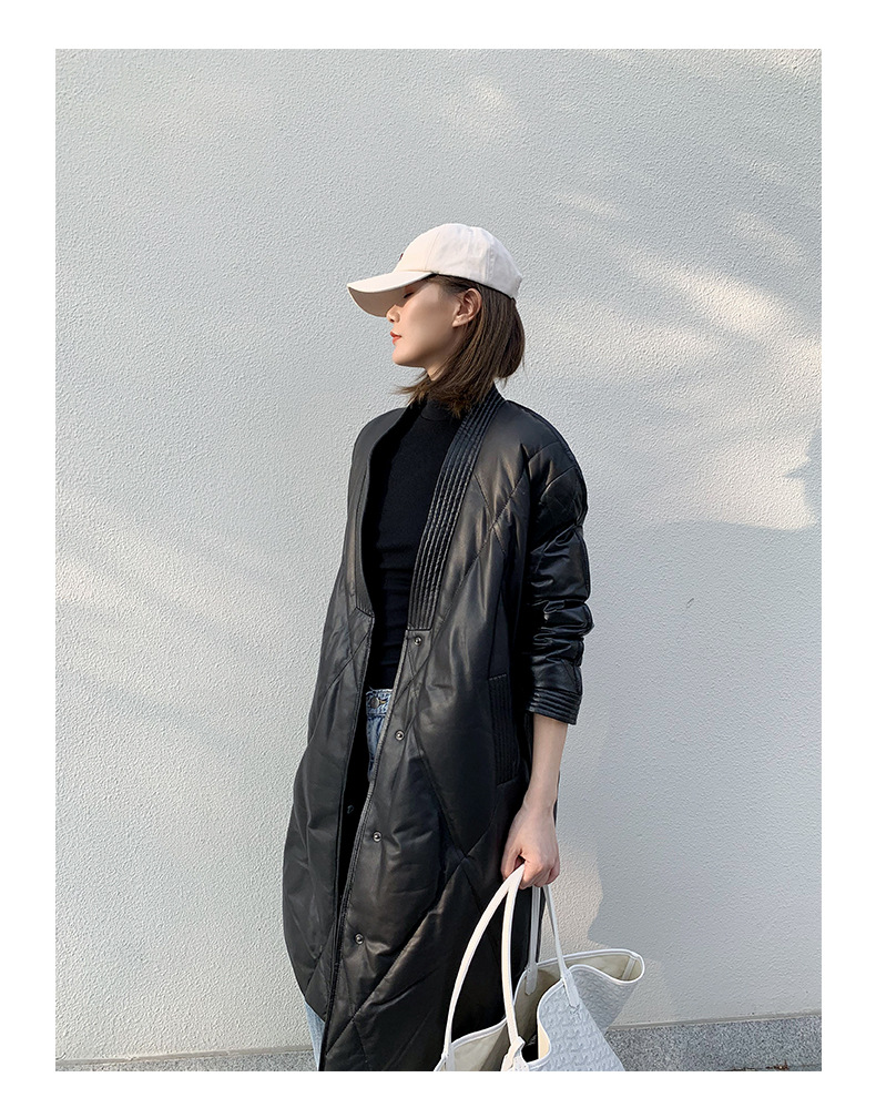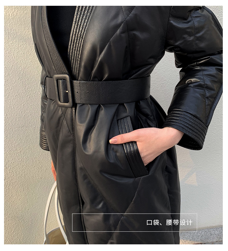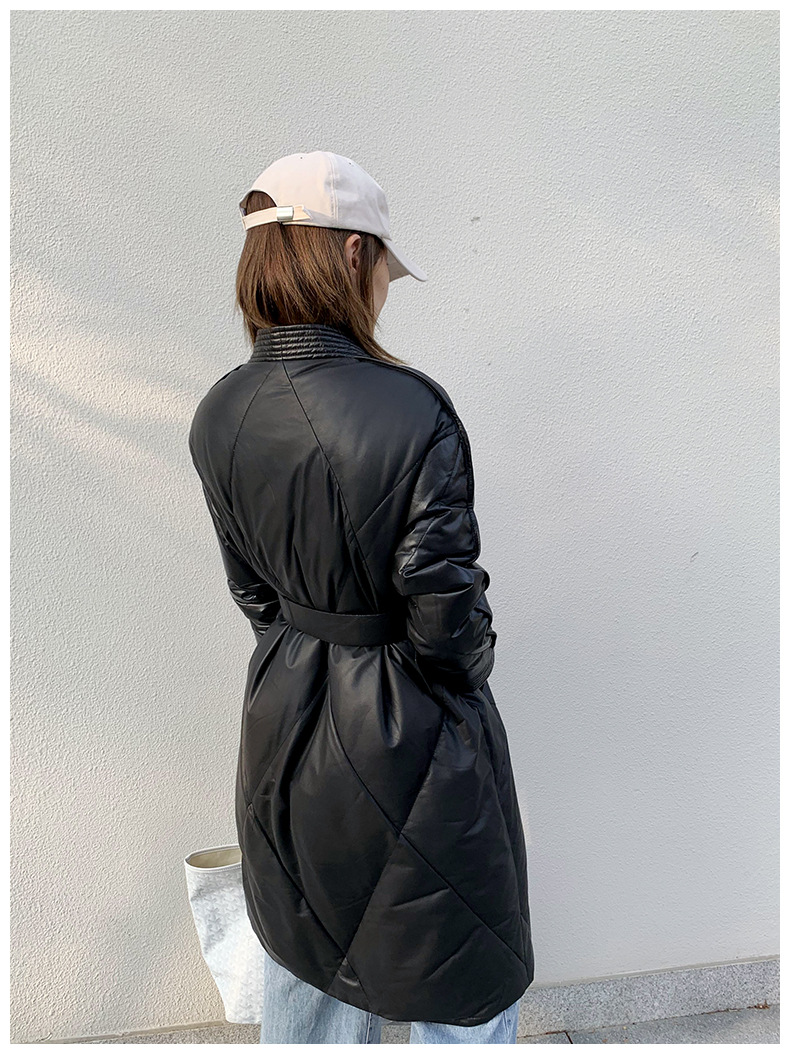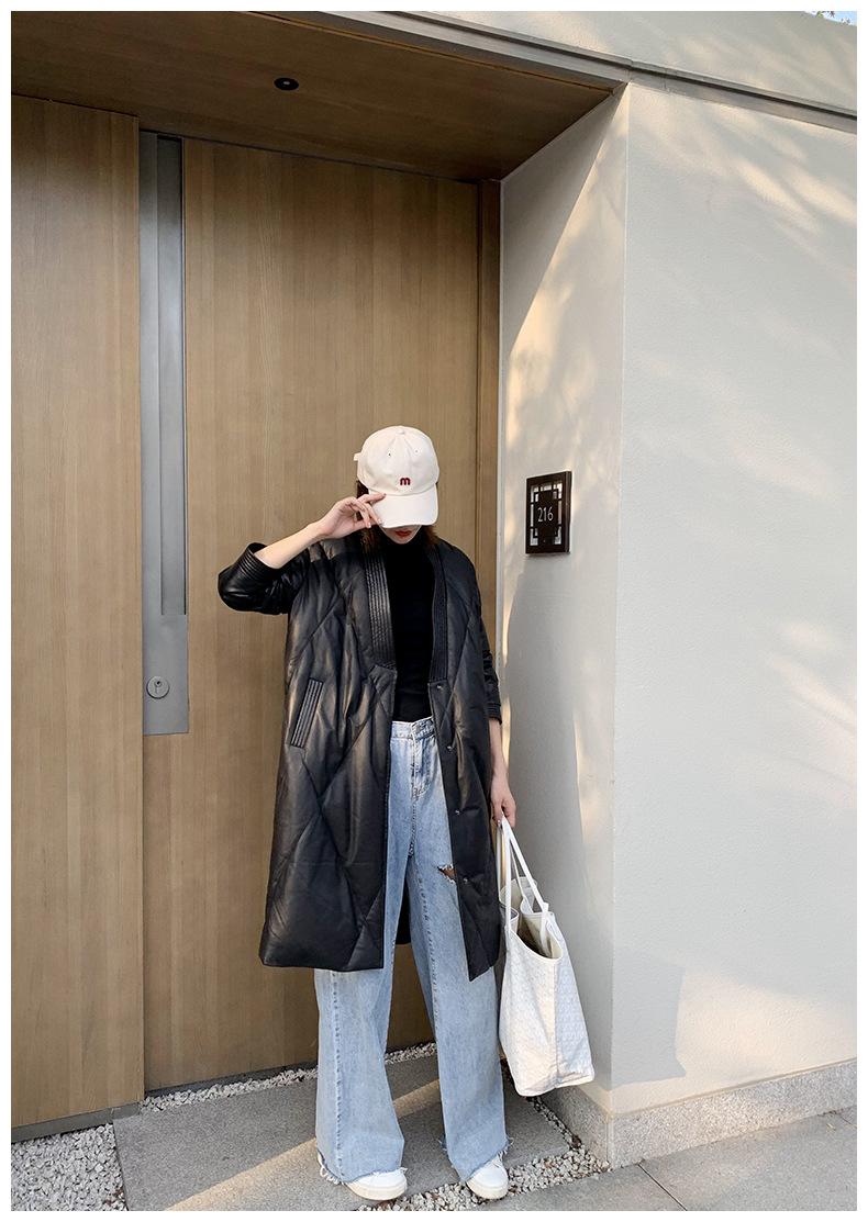 해닝 천연 가죽 다운 재킷 겨울 신상 2025 여성용 천연 가죽 코트 여성용 중간 길이 패션 루즈핏 재킷스토어 가기