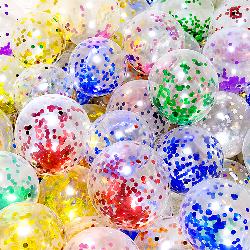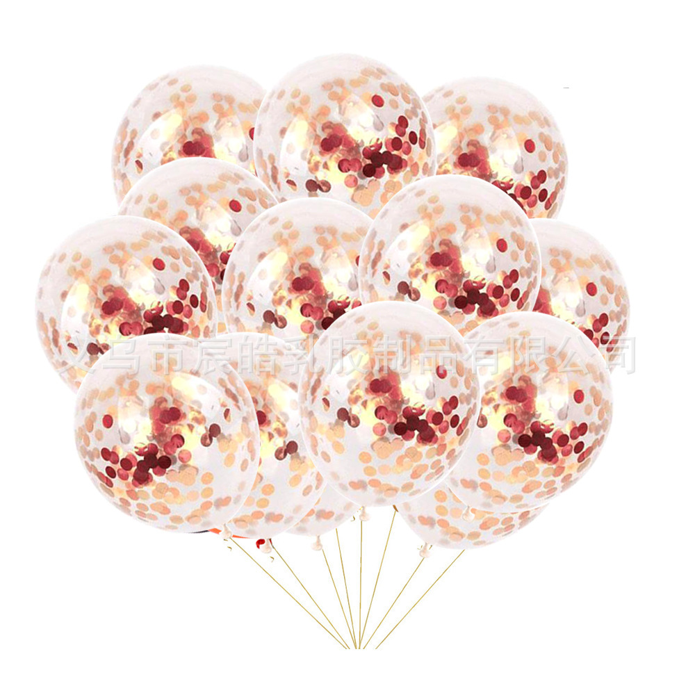 크로스 보더 12 인치 투명 라운드 색종이 반짝이 로즈 골드 라텍스 풍선 색종이 풍선 장식스토어 가기
